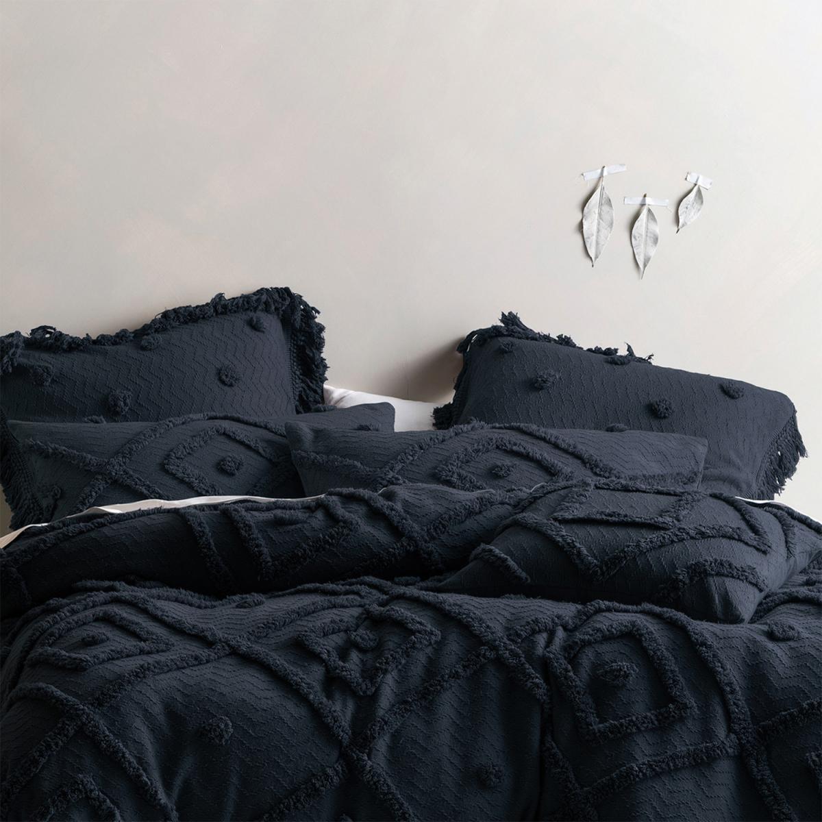 Featuring a beautiful soft handle, this Aztec style geometric is tufted on the cotton jacquard ground. To add a relaxed vibe to this stylish bedroom look - complete this modern bedroom by accessorising with the coordinating duvet cover set and cotton chenille cushion.