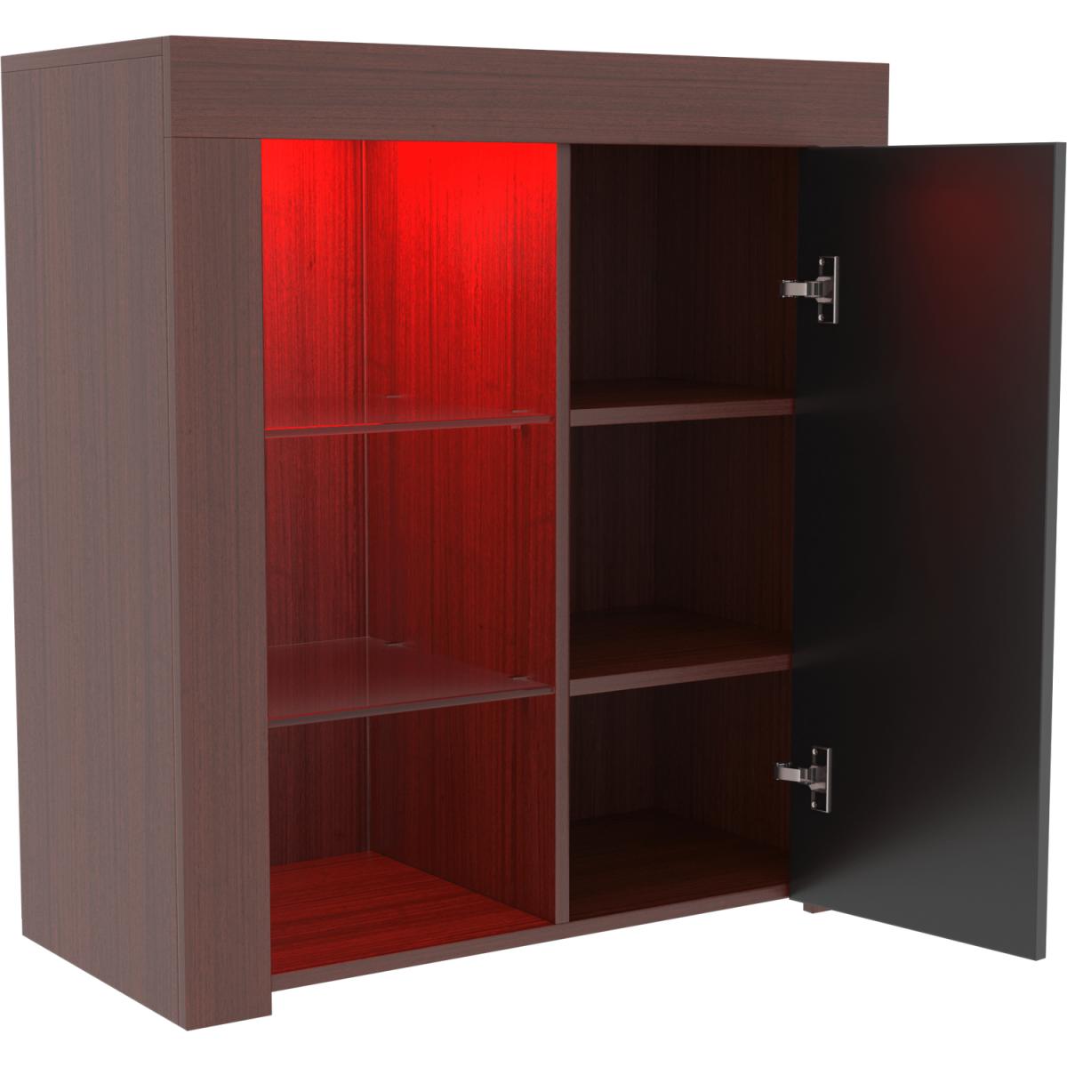 This new and modern stylish product, Azura 1 Door LED Sideboard, will help you keep your living room neat and tidy while adding a chic touch. Featuring 2 glass shelves, 1 door containing 2 additional shelves and LED lighting, it leaves plenty of space to store all your items whilst transforming your room from any decor to a more contemporary one. The door also features a magnetic latch for safely and securely closing the door. The sideboards includes a multi-colour LED backlight which can switch between a variety of colours with various effects such as strobe and fade.