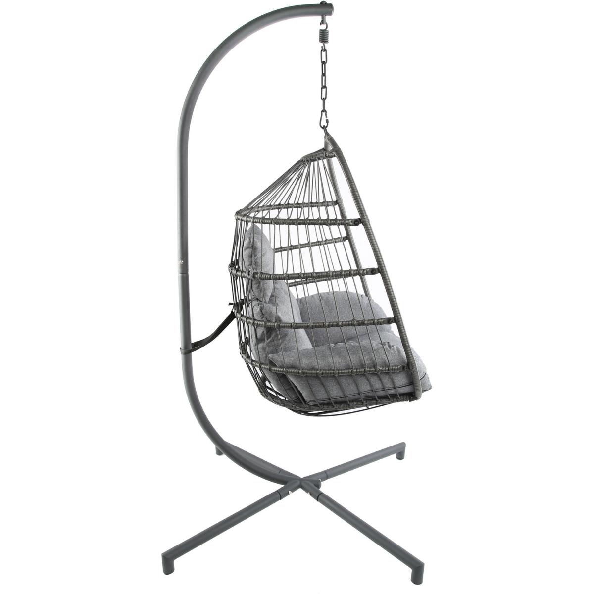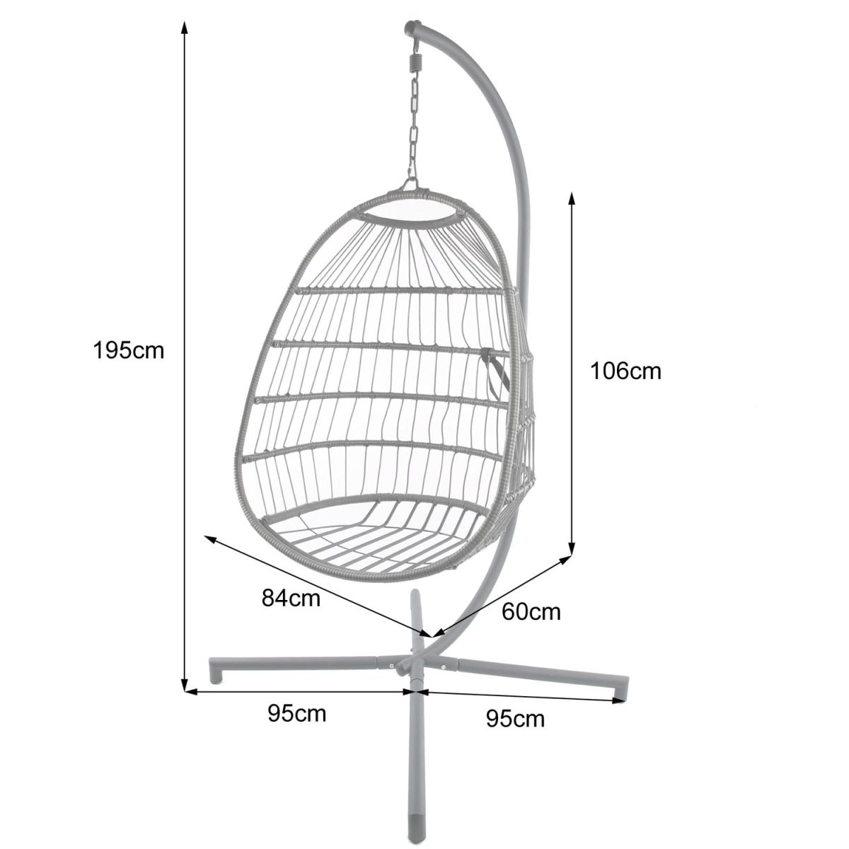 The Azura Foldable Hanging Chair will be a super stylish and comfortable addition to your outdoor space. A cocoon wrapped in rattan hangs from the frame by a chain, which will provide both a calming swinging motion and a quirky visual to your garden. This egg chair is designed with super plush cushions that you can sink into, perfect for enjoying a sunny evening with a good book after a long day at work. The frame of this hanging egg chair is made from strong yet lightweight steel, ensuring it is easy to assemble and will remain strong throughout the summer. A powder coating finish adds a high level of rust resistance to keep it looking sleek and attractive year after year. We would advise covering when not in use.