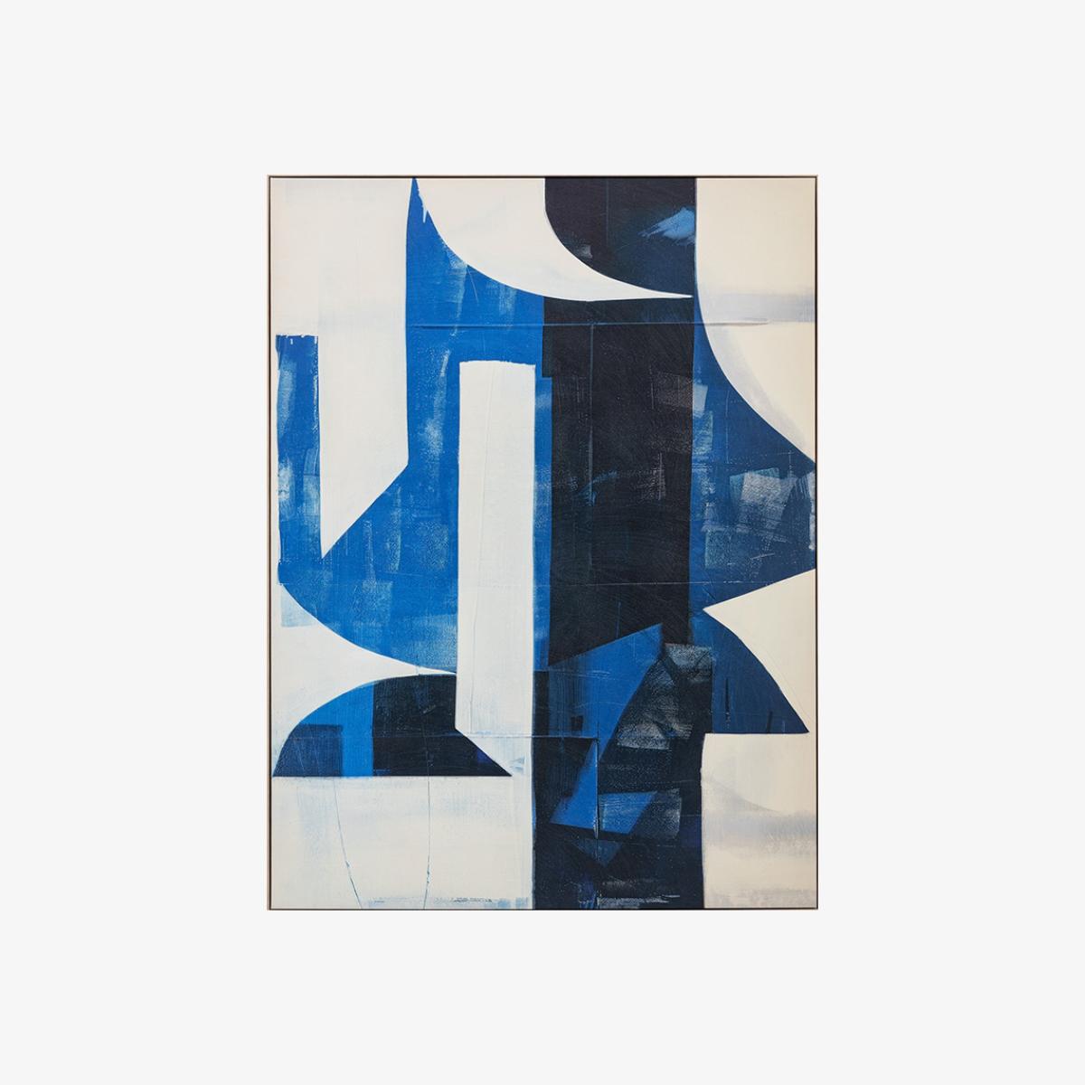 I really like this one because of its bold, modern colour palette and striking abstract design. It works well in contemporary interiors, especially when paired with neutral tones or minimalist schemes - think greys, whites, or natural woods. It can serve as a statement piece above a sofa or sideboard, adding visual interest without overwhelming the space. Practical styling tips include pairing it with other geometric or monochromatic accessories for a cohesive look, and ensuring it’s hung at eye level for maximum impact. Its framed canvas finish keeps it polished and ready to hang, making it a versatile addition to both living rooms and bedrooms.