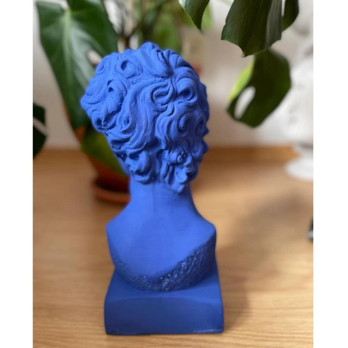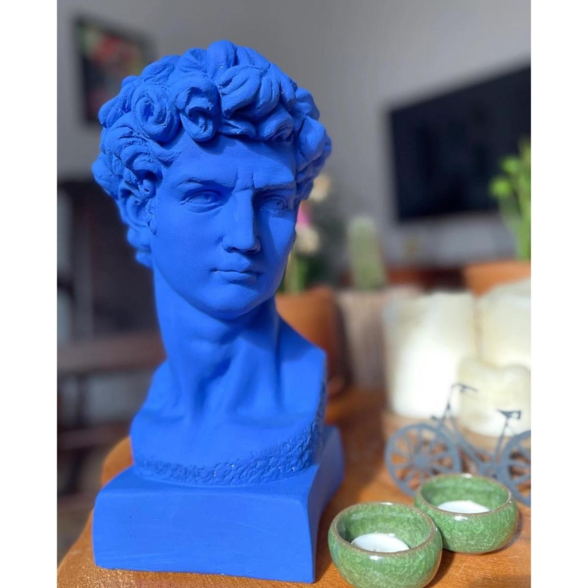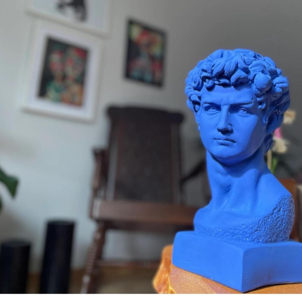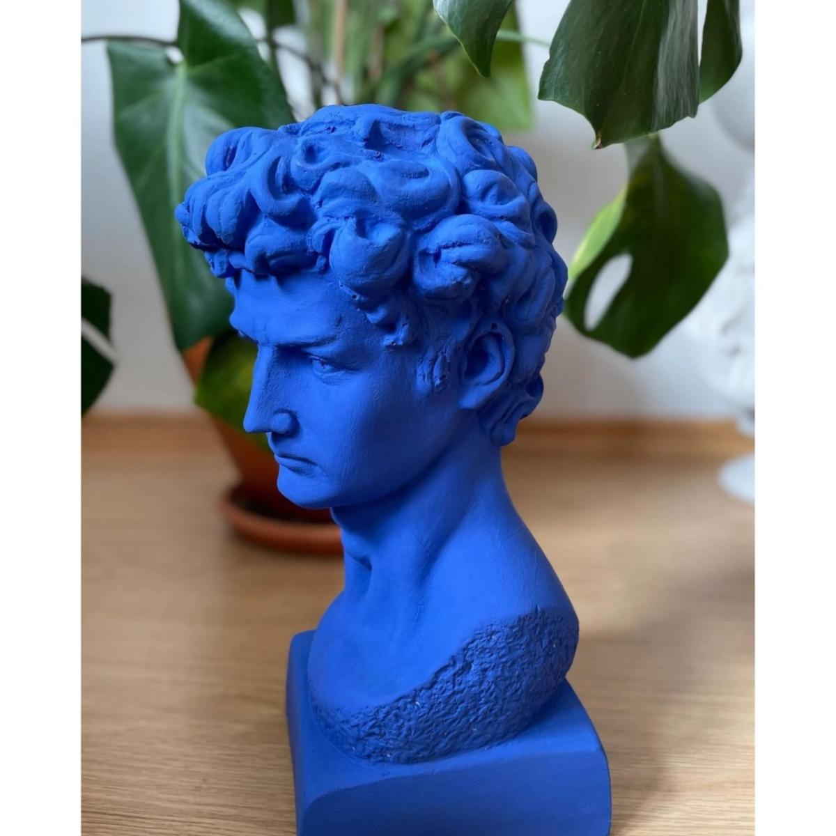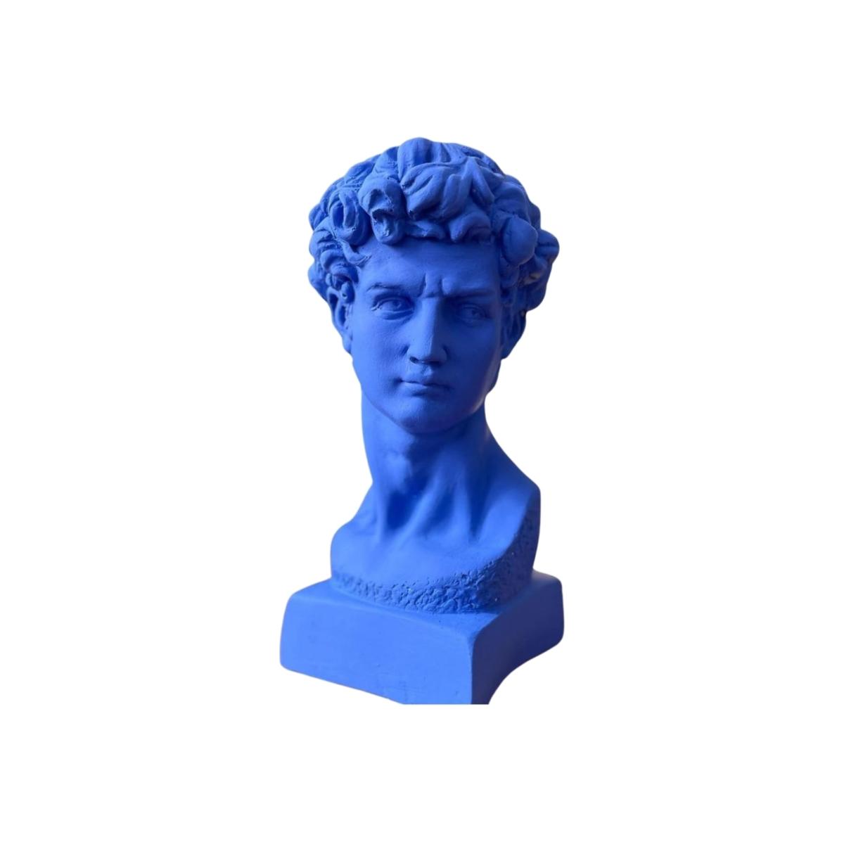 "Azure David" is a striking 34 x 20 cm sculpture that reimagines Michelangelo's iconic masterpiece with a contemporary flair. This large statue of David is colored in a vibrant blue, giving it a modern and bold aesthetic that stands out in any setting. The rich blue hue enhances the classical features of David, creating a unique juxtaposition of traditional art with modern design. Perfect for art enthusiasts and collectors, this sculpture is a statement piece that brings a touch of Renaissance art into the modern era. Gently dust your sculpture with a soft, dry cloth or a feather duster