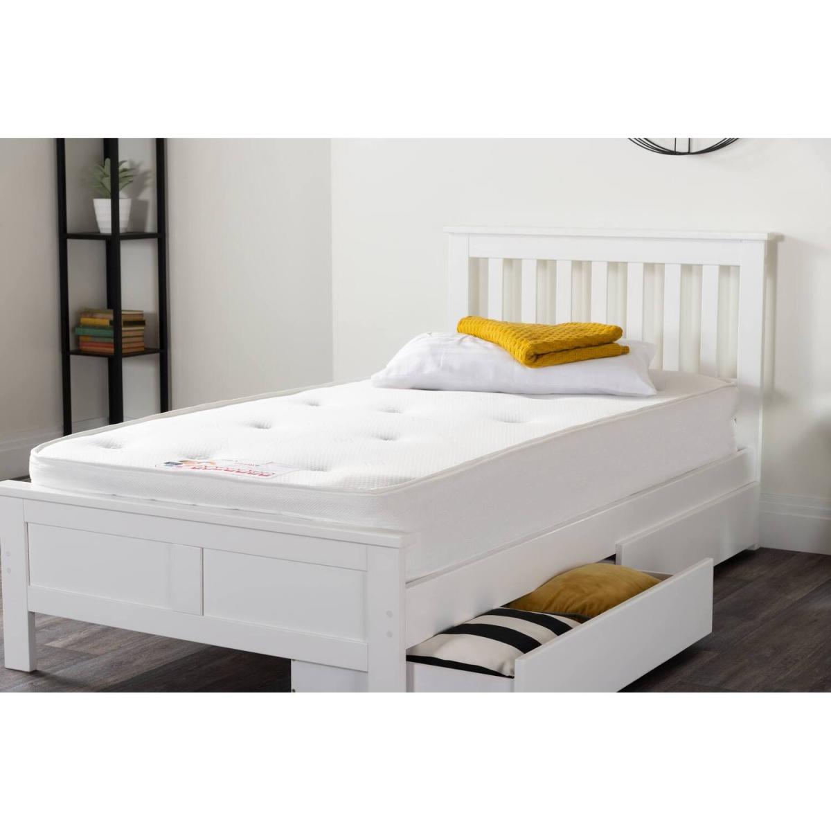 Beautifully crafted from solid pine, the Azure bed would be a wonderful addition to any bedroom. Showcasing minimalist design with a modern and sophisticated feel, it will slot seamlessly into any bedroom setting. The entire frame is made from solid pine giving the bed a strong and sturdy structure, whilst not compromising on style. The bed also features 16 wooden slats giving evenly distributed support throughout the frame, preventing your mattress from sagging and supporting up to 300kg.