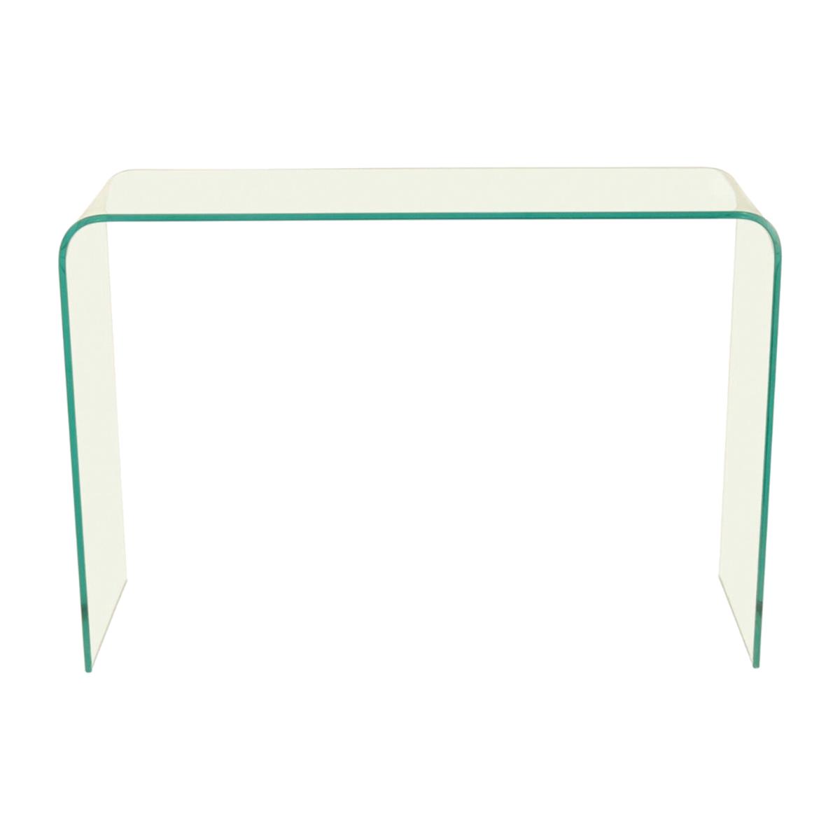 A simple, contemporary design created from curved glass, the Azurro Glass Console Table is sure to look elegant in any space. Formed from one piece of glass the modern Azurro Glass Console Table can be used to create a focal point in any room without creating a bulky feel, as the glass allows the space around the table to reflect through. Add your own personal touches to emphasise the design further with ornaments and give your home a truly modern feel.