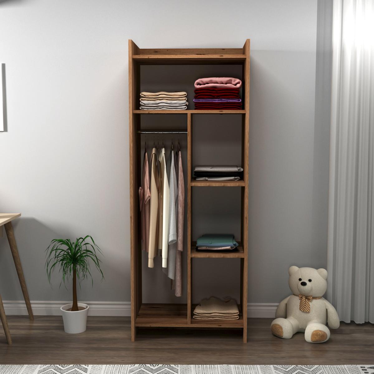 MATERIAL The wardrobe is made of an 18 mm thick quality melamine-coated particleboard. The manufactured wood surface is water-resistant to some extent and the edges are banded with PVC edge banding tape. First-class assemblyinstallation hardware and accessories are used. Our products are produced from certified quality raw materials that do not contain carcinogenic substances and comply with European Union health norms. CLEANING You can clean your furniture with a dry cloth. Avoid prolonged contact of your product with moisture and water. ASSEMBLY The product will be delivered to the customer in the original package as disassembled. It is designed to be assembled by the customer using a power drill and screwdriver. Assembly instructions and installation hardware are included in the package. For fast and error-free installation, product parts are numbered with stickers in accordance with the assembly guide.