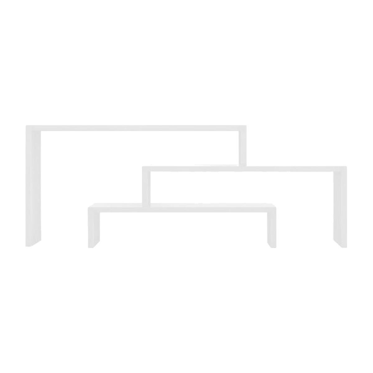 I really like this set of three console tables because they offer versatile styling options and a clean, modern look. The white finish makes them particularly adaptable to contemporary, minimalist, or Scandinavian interiors, where their simple silhouette can brighten up narrow hallways or sofa areas. They work well as entryway consoles, providing space for keys and decorative accents, or as side tables in living rooms paired with statement lamps or artwork. Practical tips include mixing heights to create visual interest and layering accessories like plants, books, or sculptures for a curated feel. This set is especially handy in interiors where flexibility is key, allowing you to create bespoke arrangements that evolve over time.
