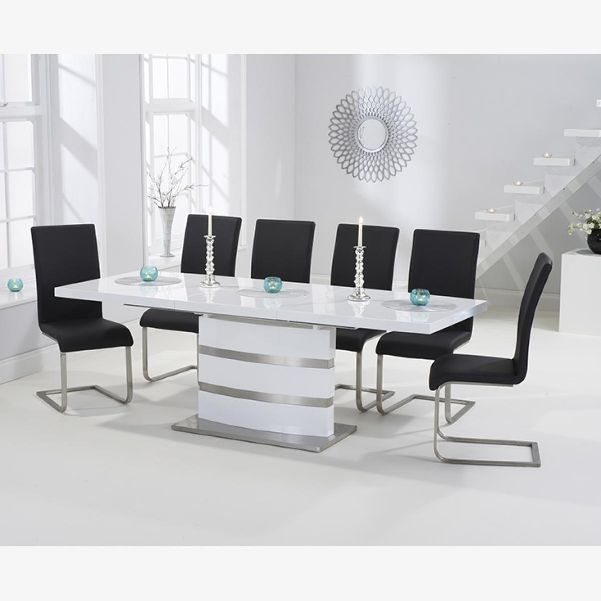 Babington 160cm White High Gloss Extending Dining Table With 8 Grey Malaga Chairs