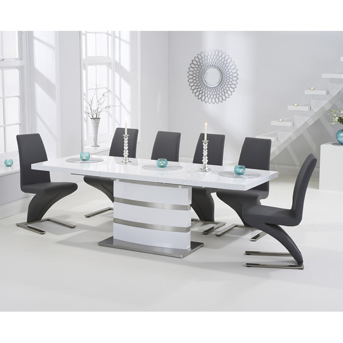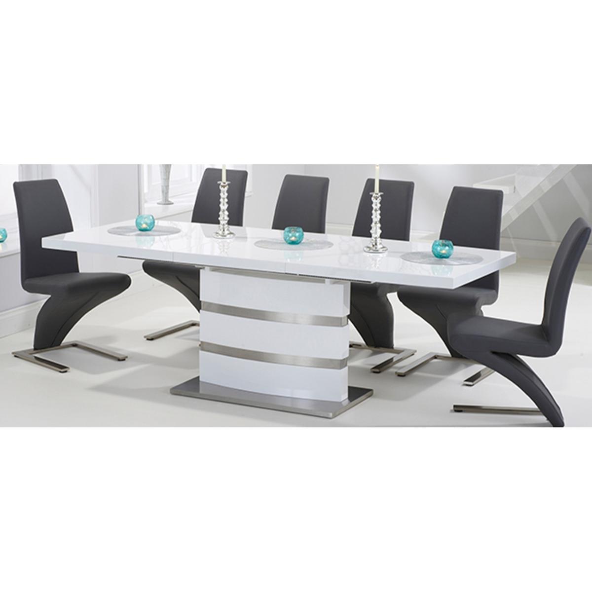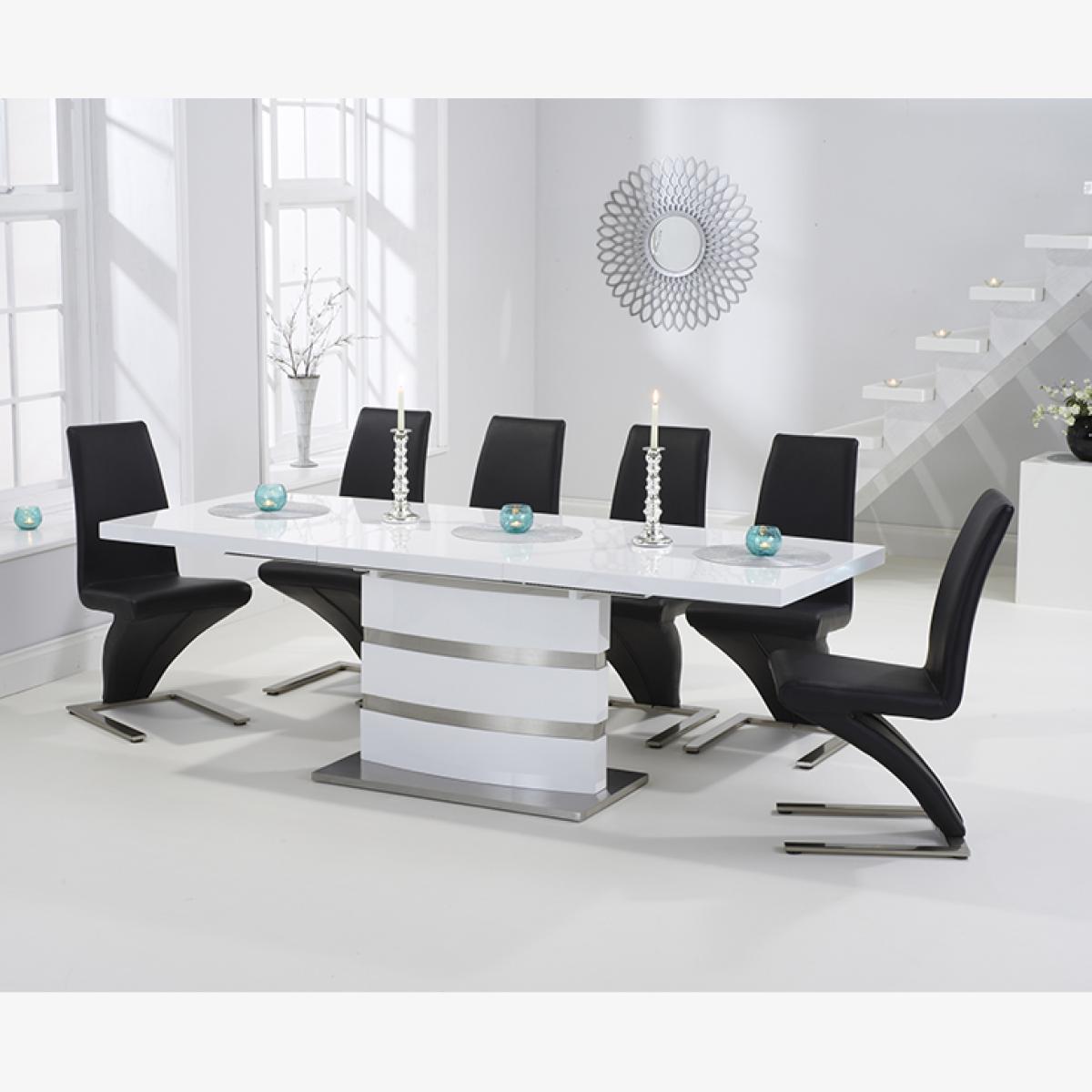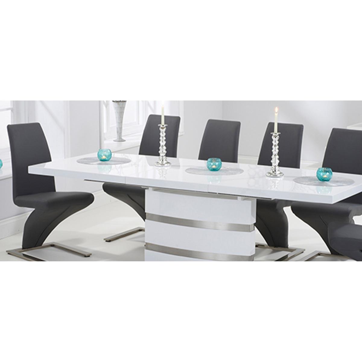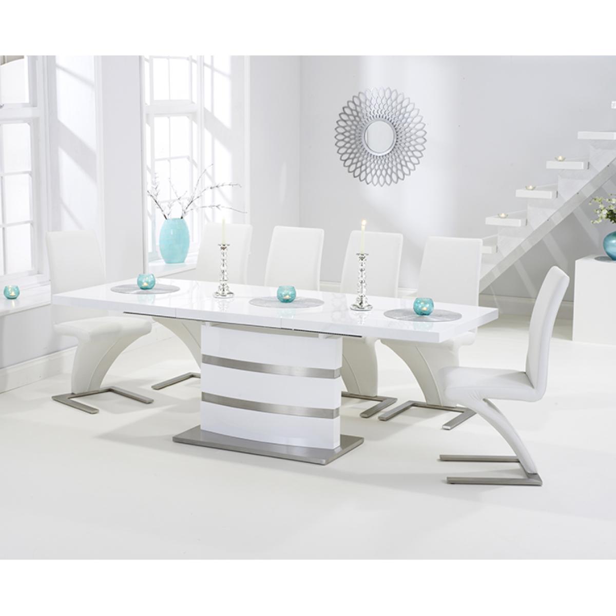 Babington 160cm White High Gloss Extending Dining Table With 8 Ivory White Hampstead Z Chairs