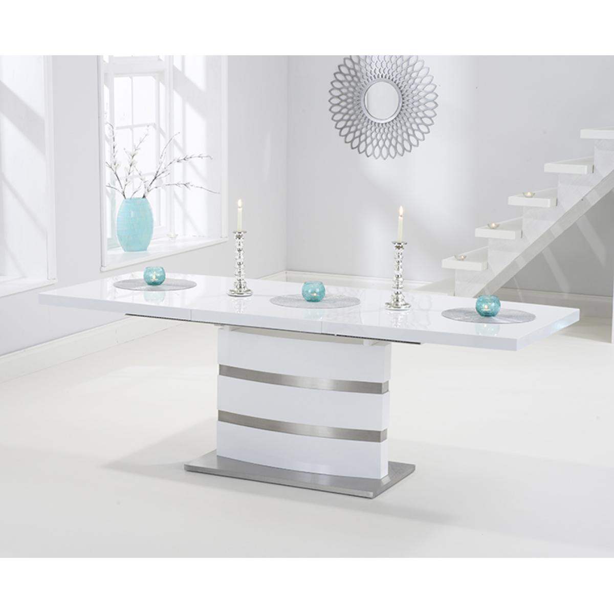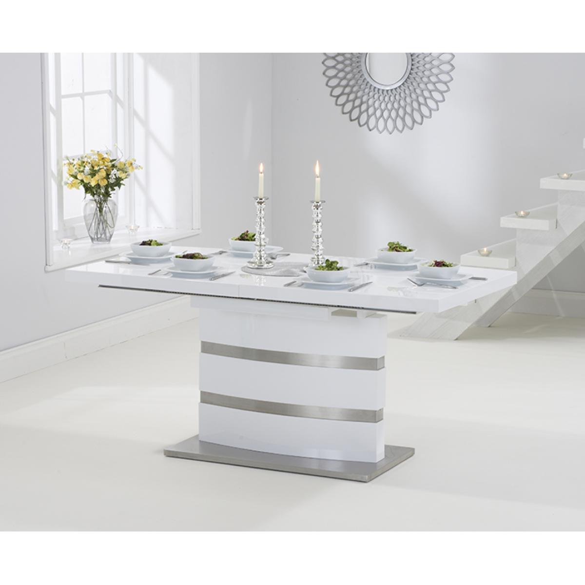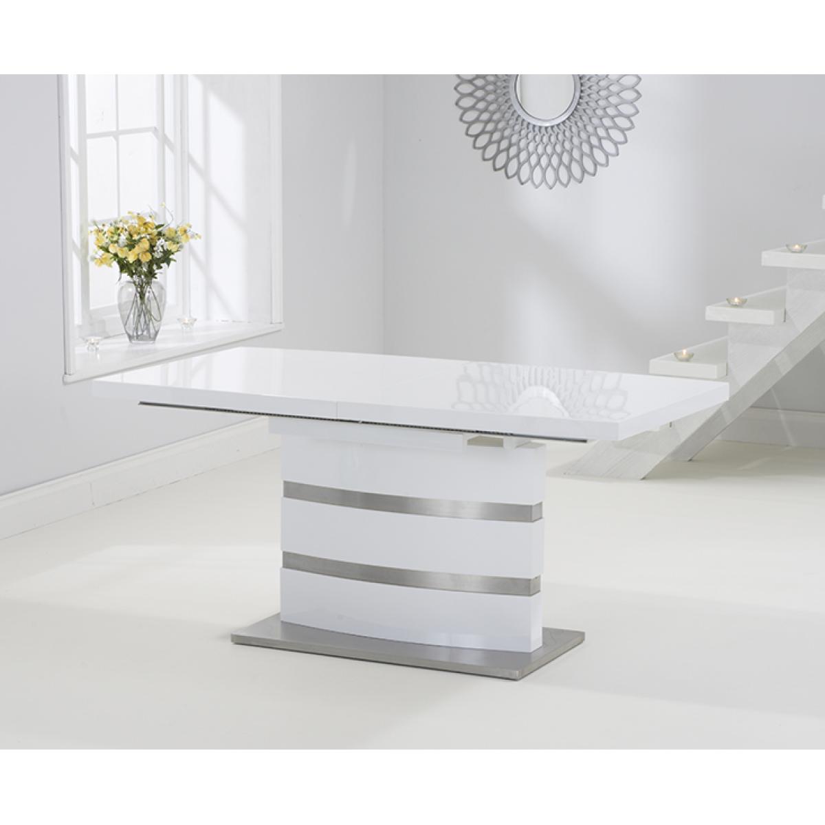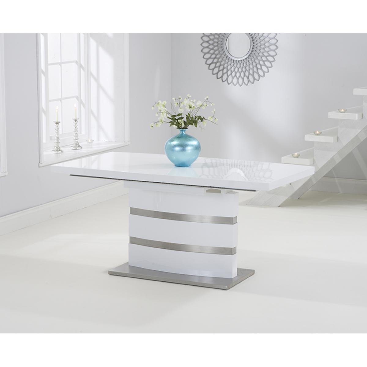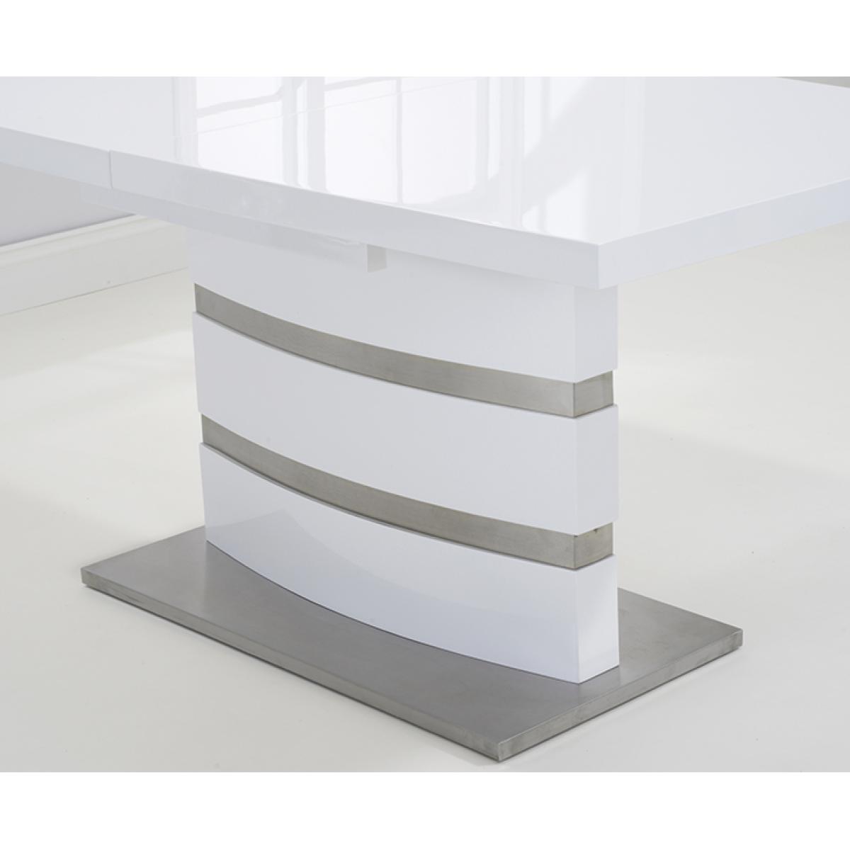 The white high gloss finish of the Vicenza 160cm dining table adds some light into your home. It's silver bands making it a classy addition