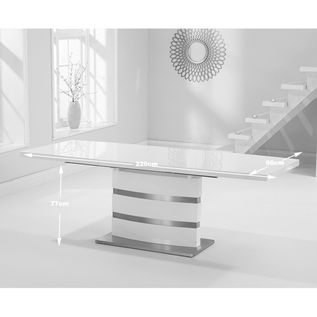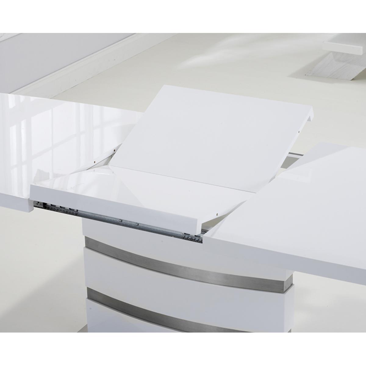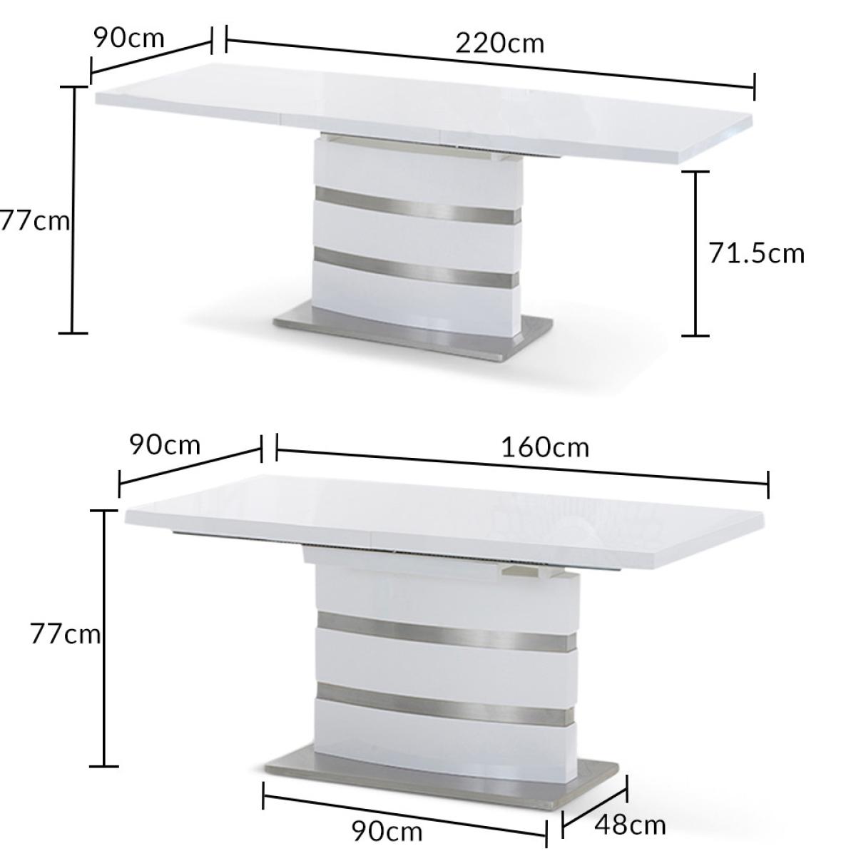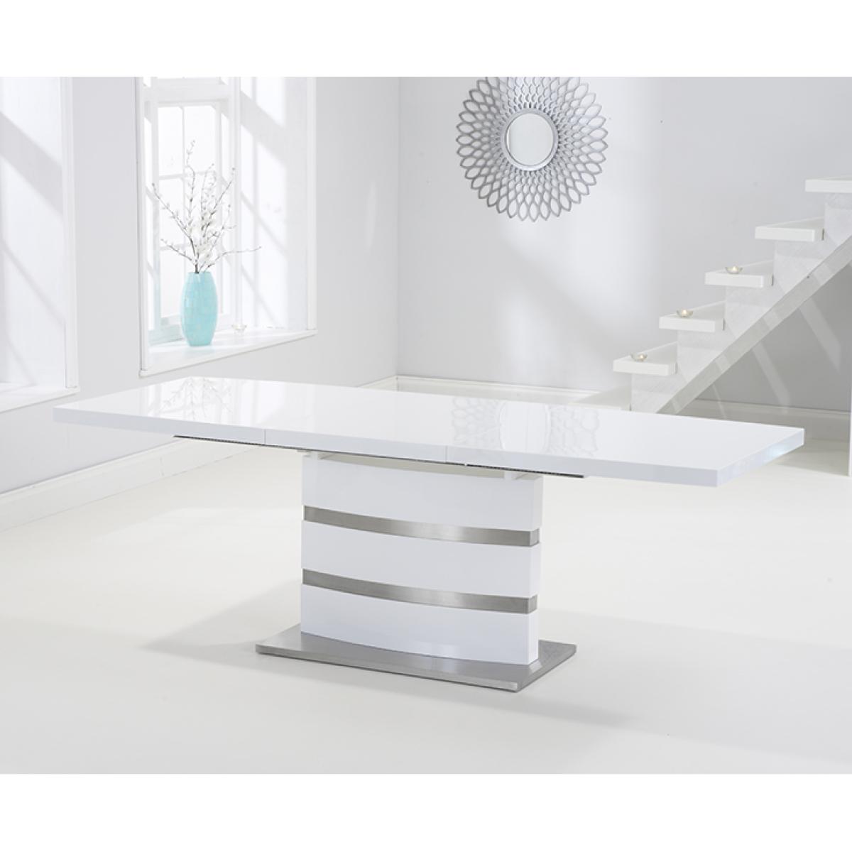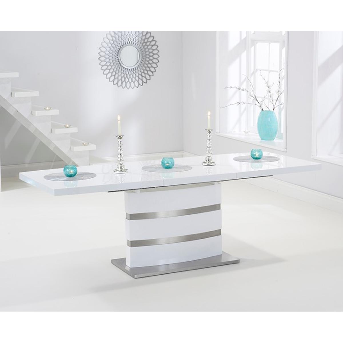 The white high gloss finish of the Vicenza 160cm dining table adds some light into your home. It's silver bands making it a classy addition
