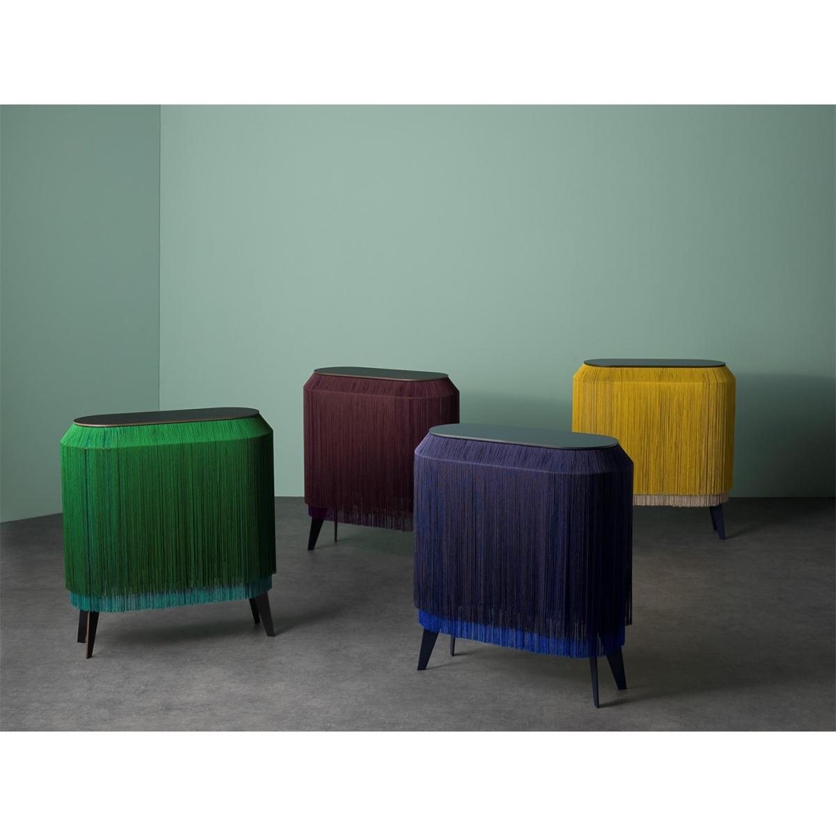 Stow away secret belongings in this Baby Alpaga side table from ibride. Made from HPL and adorned with a flapper girl inspired fringe, this side table features concealed shelves and secret compartment under the movable table top. Wonderfully extraordinary, this side table is available in a range of swish colourways and will become a striking focal point in any boudoir.