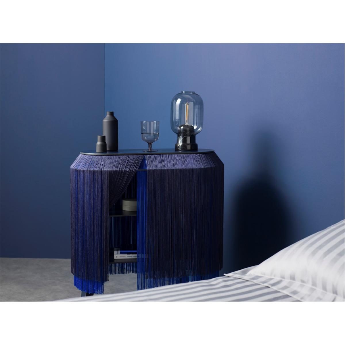 I love this little side table for its bold, contemporary appeal and the tactile interest the fringed detailing adds. It works particularly well in eclectic or modern interiors where colour and texture can be layered to create visual intrigue. This piece is versatile enough to act as a statement accent beside a neutral sofa or in a glamorous bedroom setting. To style it effectively, consider pairing it with sleek metallic accessories or minimalist lamps to let its unique design stand out. Its compact size makes it perfect for smaller spaces or as a place to keep essentials within easy reach without cluttering the room.