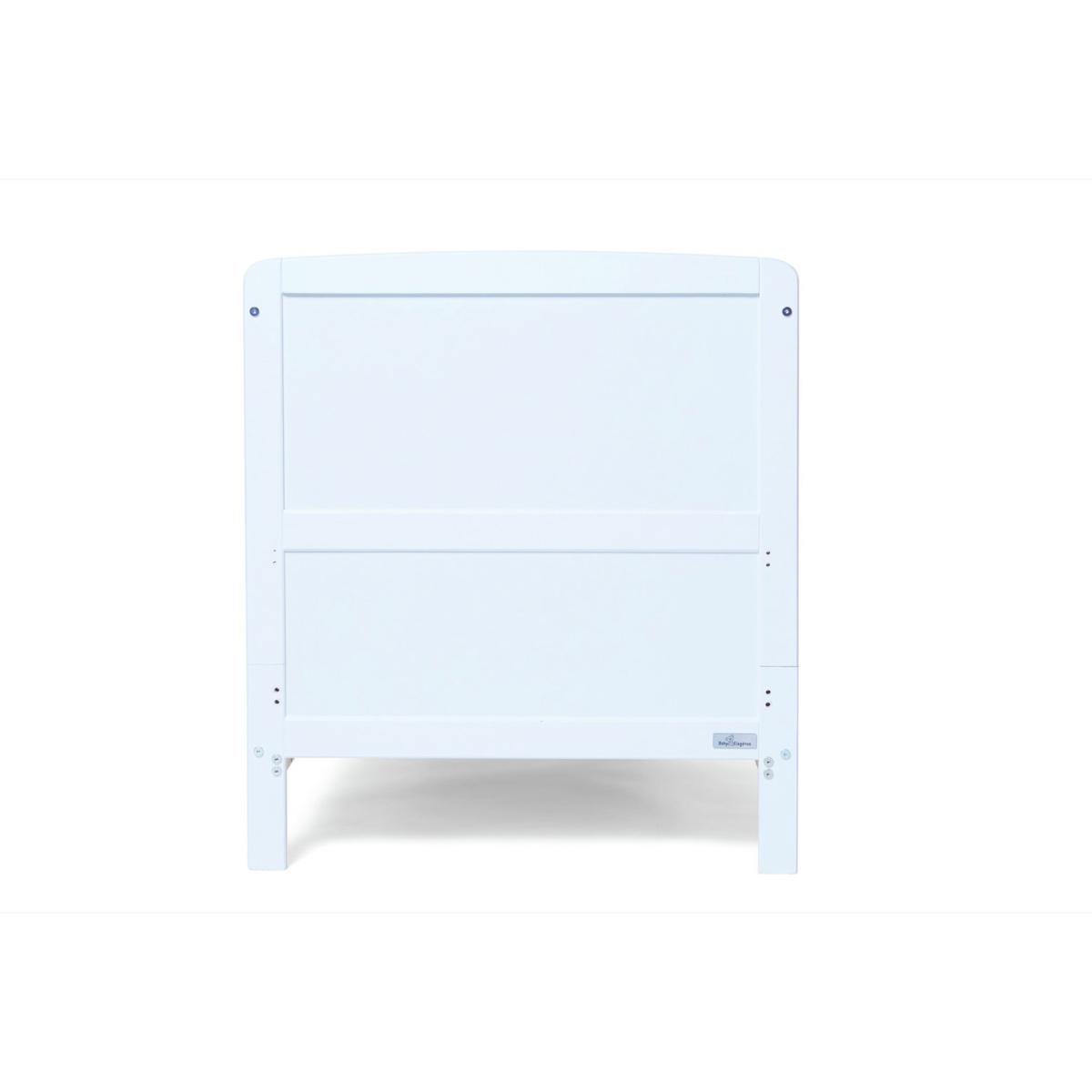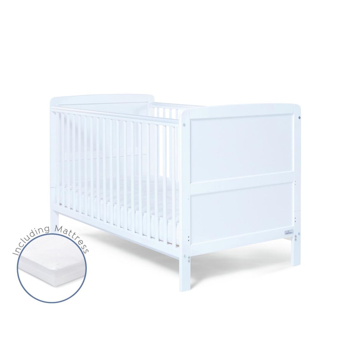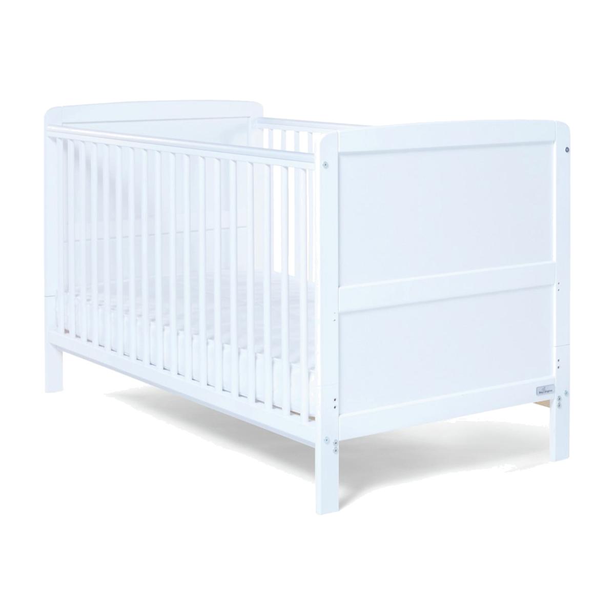 This traditionally styled cot bed has a solid pine finish, creating a warm but fresh look in your little one's nursery. It will last your little one from baby to toddler years, converting easily as your child grows. The Travis Cot Bed has fixed sides and three mattress base heights, when your baby is small, the higher level allows you to easily lift them in and out. The base can then be lowered as your child learns to sit and stand. Part of the Travis collection. Suitable from birth to 4 years and over. Suitable for babies up to 25kg. Made from pine. Packed flat. Cot Features Size L146, W77, H85cm. Weight 12kg. Teething rails - protects your baby's gums once they are teething and have started to chew. 3 position adjustable mattress base - allows you to lower the height of the mattress as your baby learns to sit and stand. Mattress base adjustable height 14cm, 24cm, 43cm. Height under cot 13cm. Cot suitable from birth until baby is able to climb out. Converts to toddler bed. to 4 year. Mattress Features Mattress size L140, W70, D10cm. Mattress included. Healthguard anti-allergy fibre mattress. Hypoallergenic. Removable washable cover.