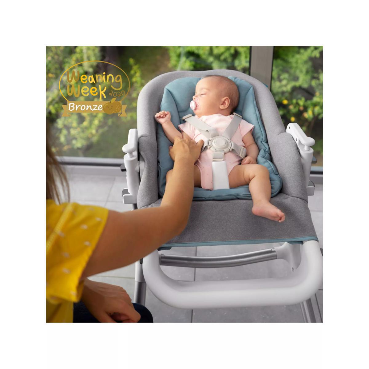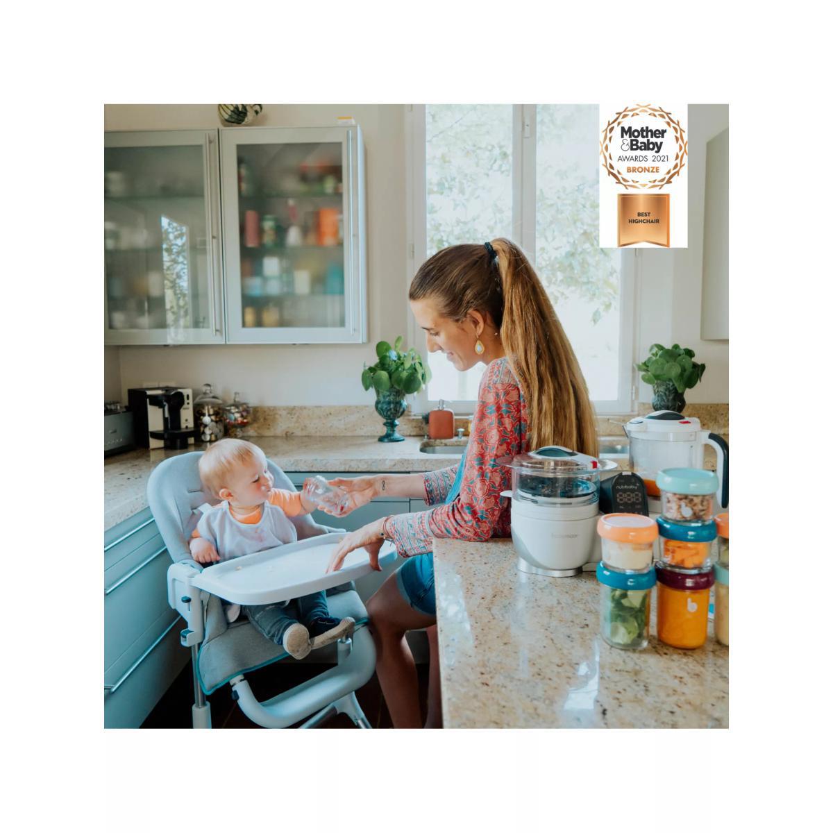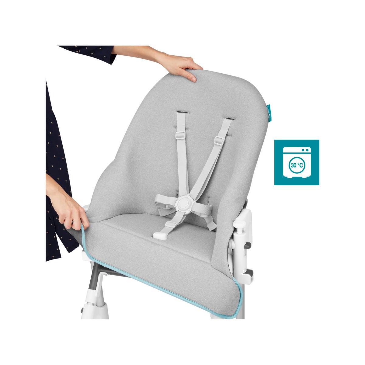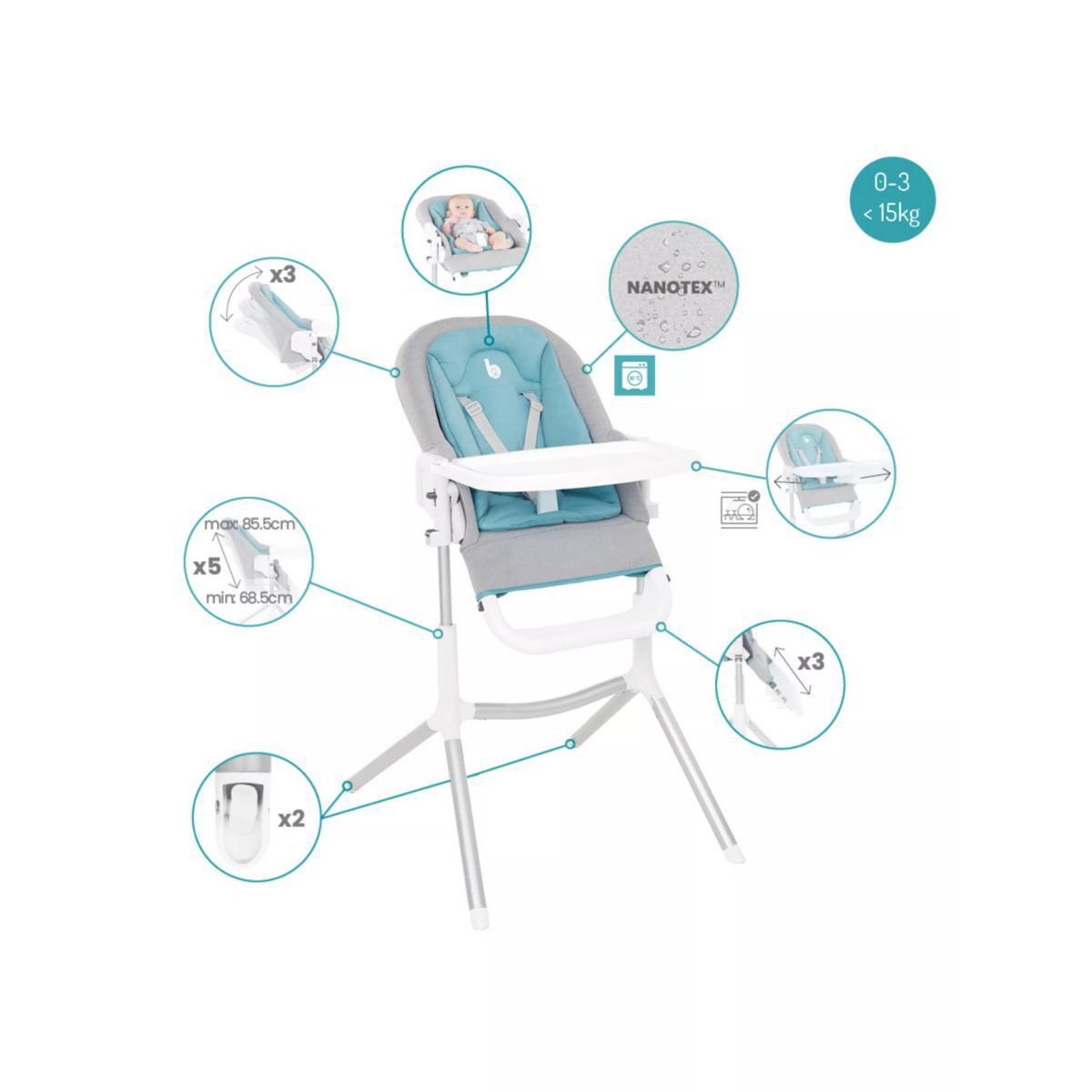 Designed to stand up to everyday use, the Slick highchair from Babymoov revolutionises your child's comfort and mealtimes. Suitable from birth to 3 years old, the Slick highchair is perfect for every stage of your weaning process. Easy to use with an excellent choice of materials, everything is designed to ensure your child is seated comfortably and the chair is easy to handle by parents just like you! From birth, it can be used with the newborn insert as a chair or bouncer. The insert features thick memory foam that slightly lifts the baby's bottom. The backrest reclines into three positions: Resting, Playing & Feeding so your baby is perfectly positioned for whatever age or activity you need it for. Once your child can sit up unaided, simply remove the newborn insert and use the wide padded seat on the chair. Everything has been designed for the comfort of children up to the age of 3. For peace of mind, the chair benefits from a crotch post and 5-point harness, ensure your child is truly safe while the footrest is height-adjustable (3 positions) so it grows with your child for maximum comfort. The chair's height can be easily adjusted using the 2 buttons (5 positions) to ensure that baby can join the family at the dinner table or kitchen island or whatever height you need. What's more, the chair has two small casters on the back legs so that it moves from one room to another easily. In a revolutionary design, the chair tray easily opens on both sides. No need to remove it before seating your child. Press the button and swivel the tray right or left. Your child is then easily and safely seated. Once the meal is finished, simply swivel the tray to unfasten the harness which is easily accessible. To make it easier to care for the Slick high chair, the seat is made from waterproof Nanotex™ fabric for guaranteed easy cleaning. Both the seat and the newborn insert have a removable cover which is machine washable at 30°. Plus, the tray can be removed and is dishwasher-proof. Key Features: Suitable from birth to 3 years old Comes with a newborn insert that allows the chair to be used as a bouncer. Three recline positions Crotch post and 5-point harness for safety Footrest is height-adjustable (3 positions) for comfort Adjustable chair height for convenience Tray easily opens on both sides Waterproof Nanotex™ fabric for guaranteed easy cleaning Machine washable fabrics and dishwasher safe tray