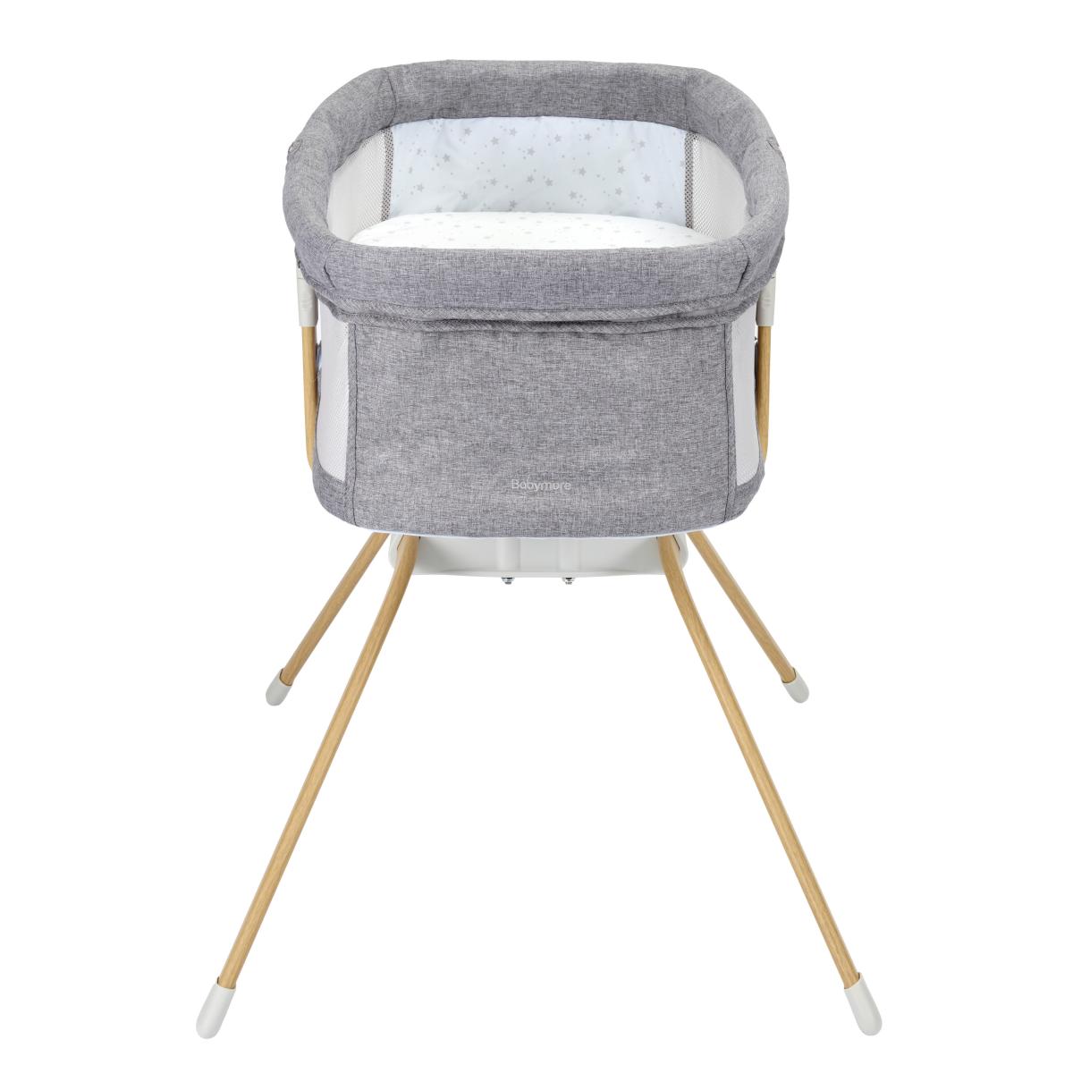 Gently soothe your baby to sleep with Babymore’s Air Motion Gliding Crib, bringing a simple, silent and well-designed crib to your nursery. The soothing side to side motion can be operated by a parent, but also activates on the slightest movement, so if your baby stirs or rolls, settling your baby back to sleep is easy and effortless. This lightweight and stand-alone crib is perfect if you want to be able to move it around your home, as there is no need to lock it onto your bed and you can easily check on your baby through double mesh sides. Both stylish and modern, the crib has a perfect height of 74cm, offering easy access to your baby anywhere in your home and is ideal for night-time feeds, from birth up to 6 months or 9 kg. Whether you’re trying to build a sleeping routine or need to take it with you for overnight stays, this crib can double up as a holiday travel crib as everything fits into a compact travel bag so you can dismantle or assembled in minutes, with no tools needed. It comes with a 6 month guarantee from date of purchase and can be extended to 12 months if the product is registered online with Babymore within 28 days of receiving the item. Care Instructions:Mattress cover zips off for machine wash, bassinet cover zips off for hand wash. Plastic and metal parts may be sponge cleaned with warm water and a mild detergent.