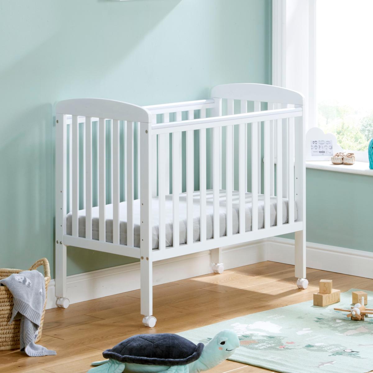 Designed for smaller spaces, Babymore’s Space Saver Cot is made for those who want all the benefits of a solid cot but without the bulk. Perfect for placing in most parent’s bedrooms, this cot has the benefit of lasting around 12 months and the four different mattress positions allow you to adjust the base as your baby grows. The option of adding lockable wheels on the cot allows easy movement around your space. A protective teething rail is fitted along both sides to protect the wood from nibbling and teething marks and comes with a 6 month guarantee from date of purchase, which can be extended to 12 months if the product is registered online with Babymore within 28 days of receiving the item.