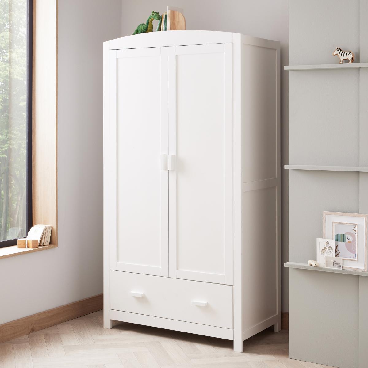 Organise your baby’s adorable outfits with this stunning wardrobe from Babymore’s Universal range, combining classic design and impeccable construction in one piece of furniture. Featuring a full width drawer, sturdy hanging rail and soft double doors, you can easily display and store your baby’s clothing and belongings. This wardrobe comes with a 6 month guarantee from date of purchase, which can be extended to 12 months if the product is registered online with Babymore within 28 days of receiving the item. Create a coordinated look in your nursery by combining with other items from Babymore’s Universal range.