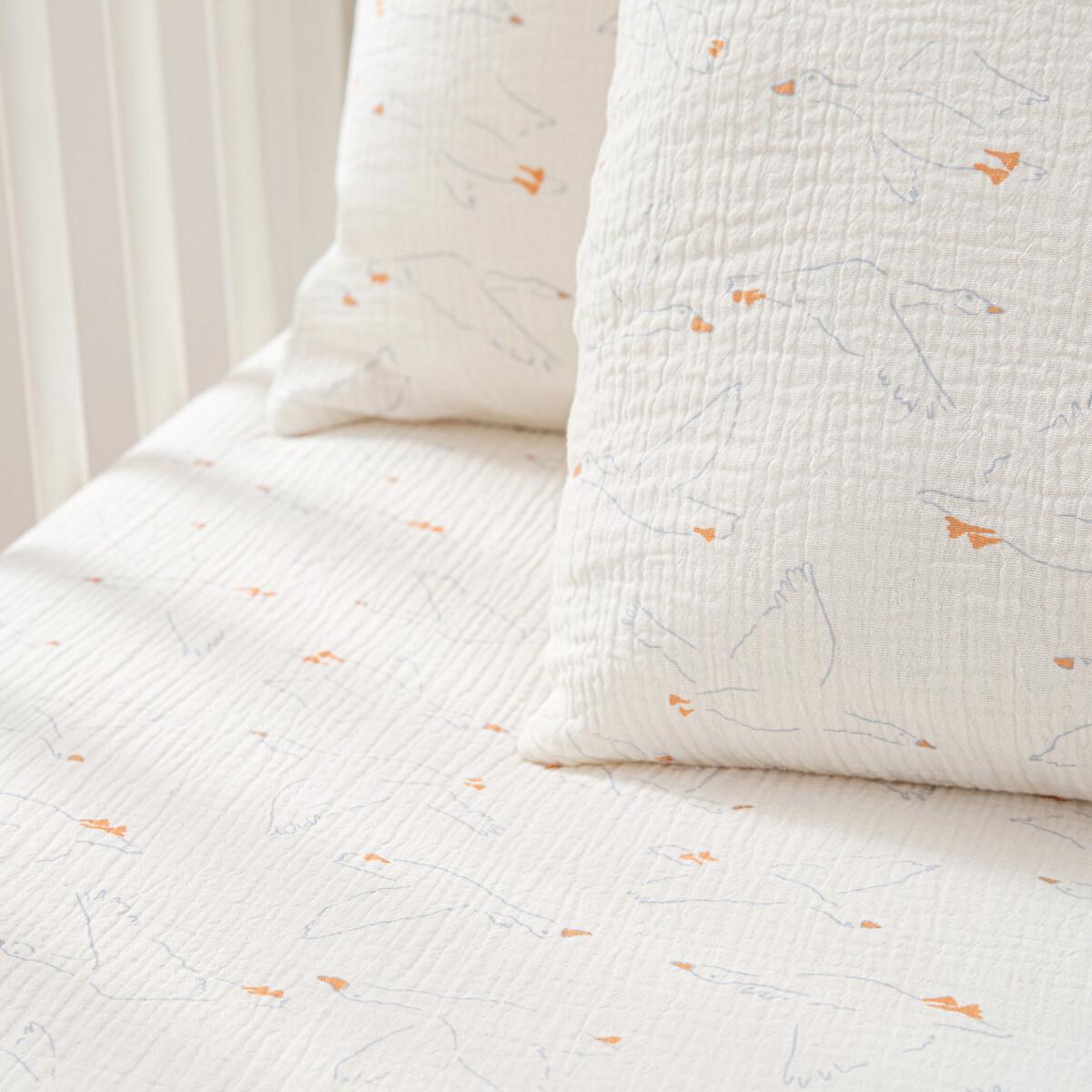 Cute little geese to help baby sleep soundly and dream sweet dreams. This cotton muslin pillowcase is designed by La Redoute Intérieurs. Cotton muslin is light, supple and super soft. Naturally textured, they do not require ironing and become more beautiful over time. Product Details • 100% cotton, 135g/m2 • Cotton muslin • Small geese printed front and back. As the seasons change, add your own personal touch by mixing the Wildoy range with our range of plain Scenario bed linen. Care Advice • Machine washable at 60°C • By washing your laundry at 40°C instead of 60°C, you limit energy consumption • Product will regain its texture after tumble drying • The cotton muslin may show slight marks due to packaging creases. We recommend that you wash the product as soon as you receive it, and then tumble dry it to restore its look and the beautiful waffle effect. Dimensions • 35 x 45 : Rectangular pillowcase • 40 x 60 : Rectangular pillowcase • OEKO-TEX® Standard 100. Standard 100 certification by OEKO-TEX® tests textile products for harmful substances via an independent, international label.