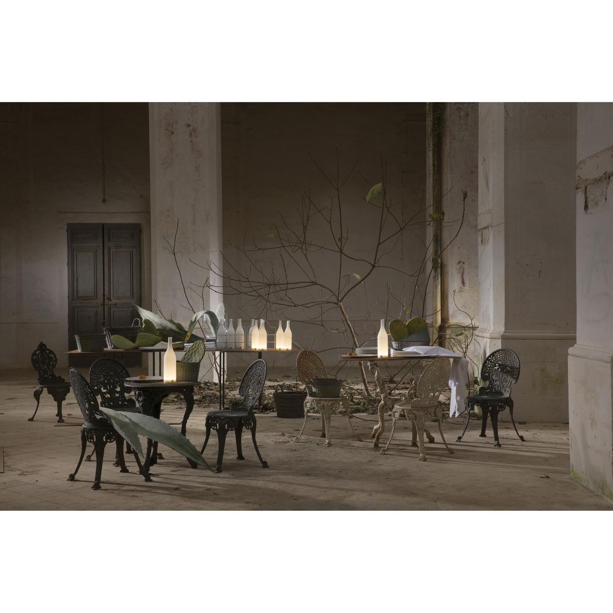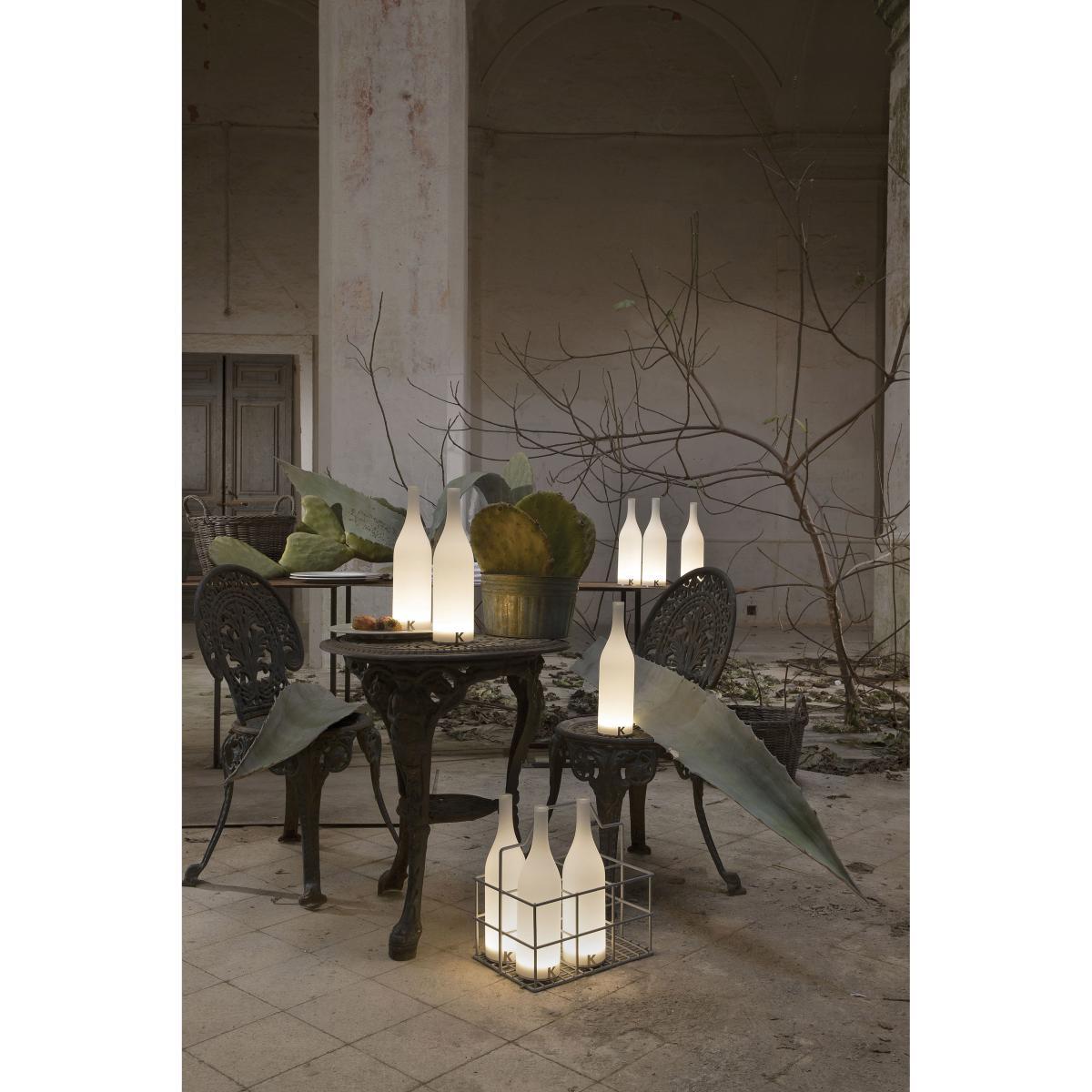 After a long day's harvesting, the grapes, heaped into a tub, would be pressed by the light of a candle, placed on the bottom of a barrel. The candle served to light up the cellar but also to warn in the event that the gases released while the must was fermenting passed the danger levels. This memory, linked to Karman tradition, is the inspiration for Bacco, the rechargeable table lamp, shaped like a wine bottle, and designed by Matteo Ugolini to create a soft atmosphere while enjoying a nice bottle of fine wine.