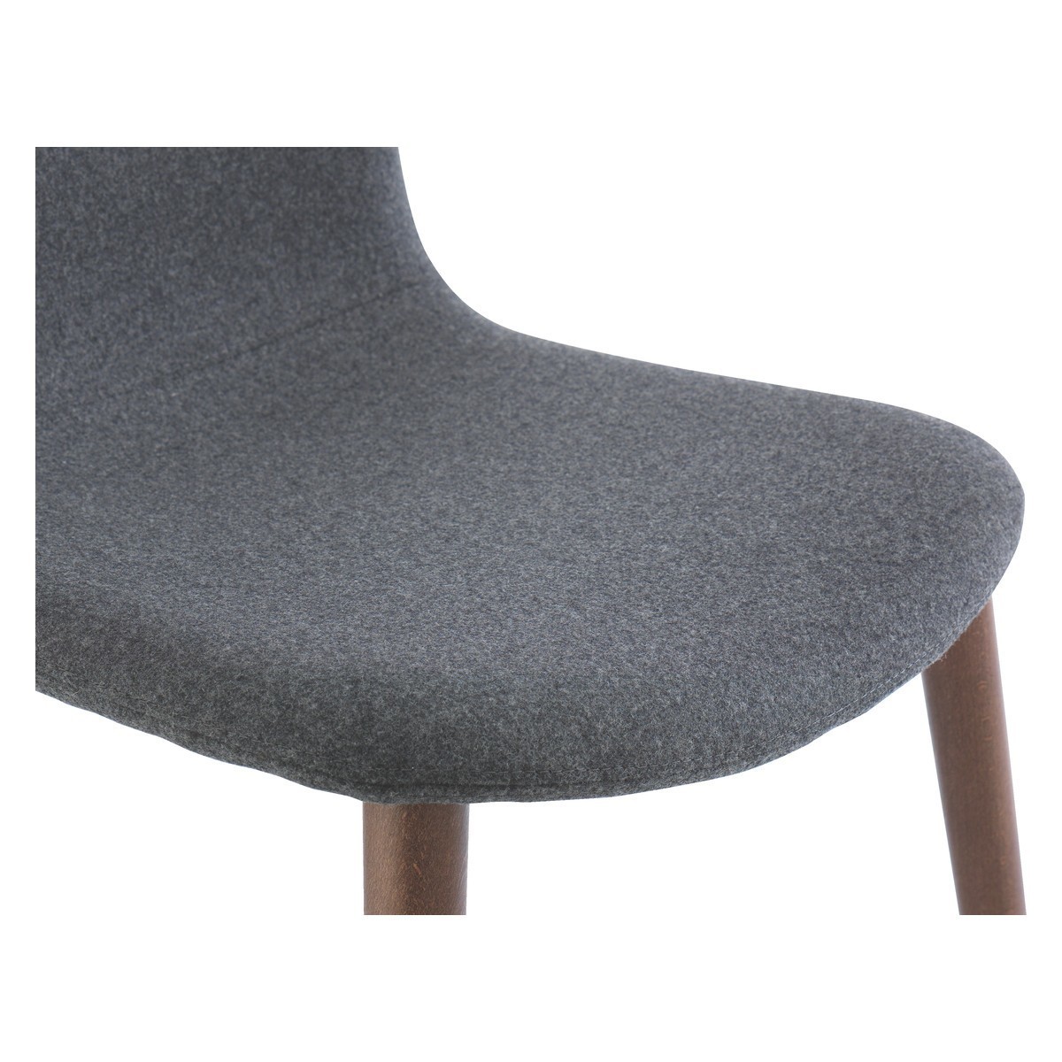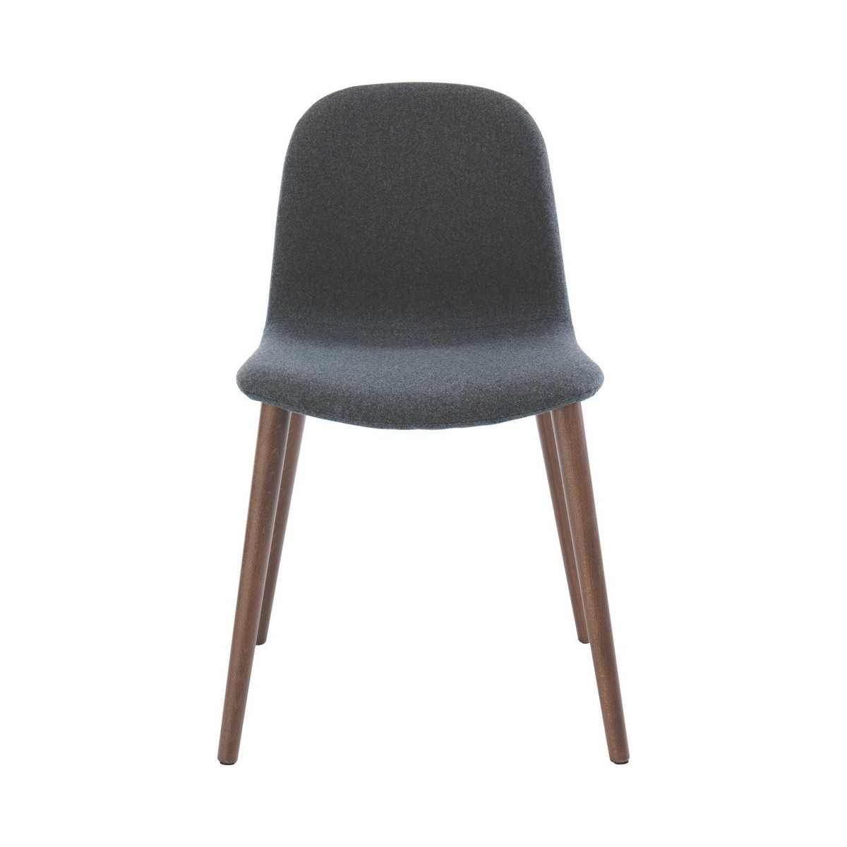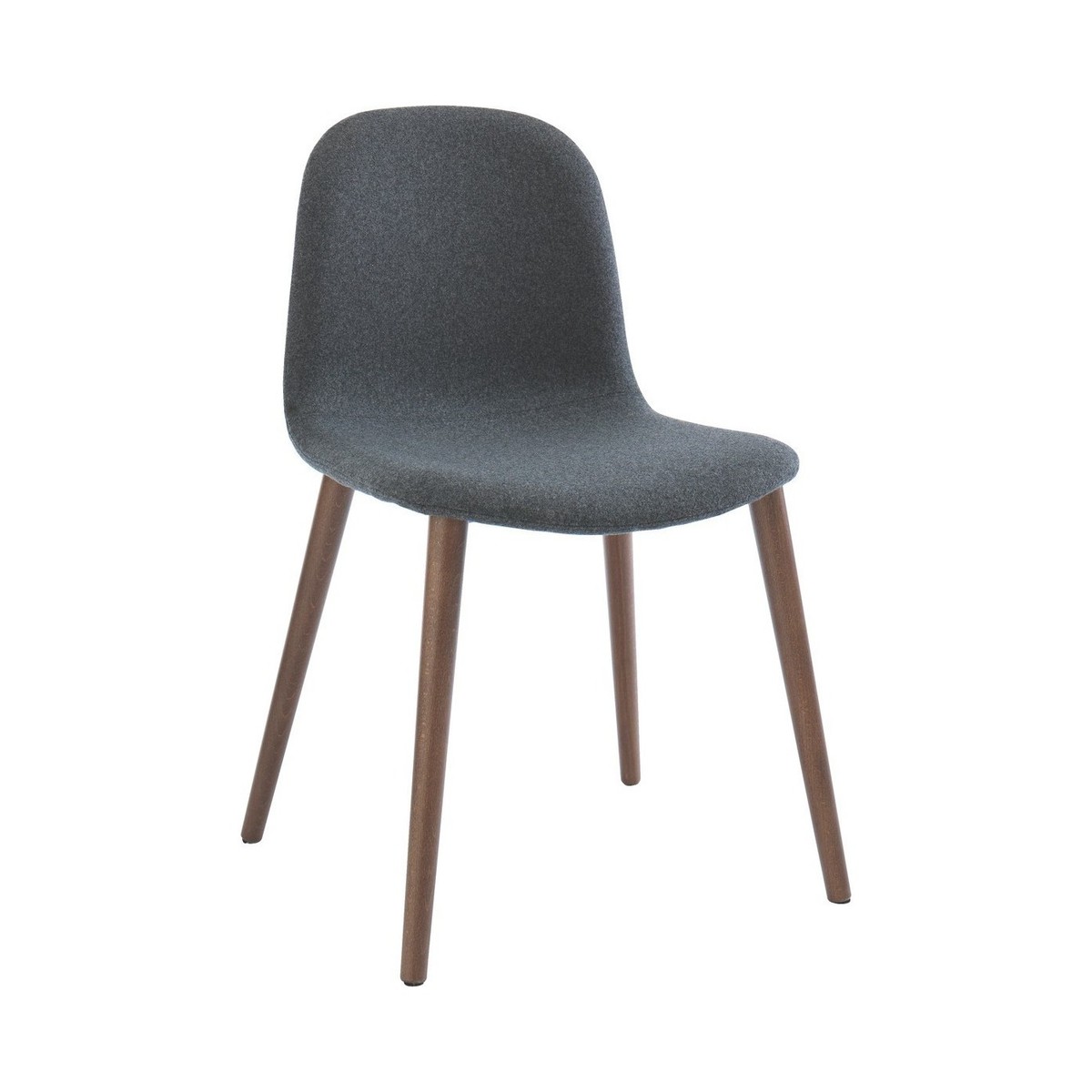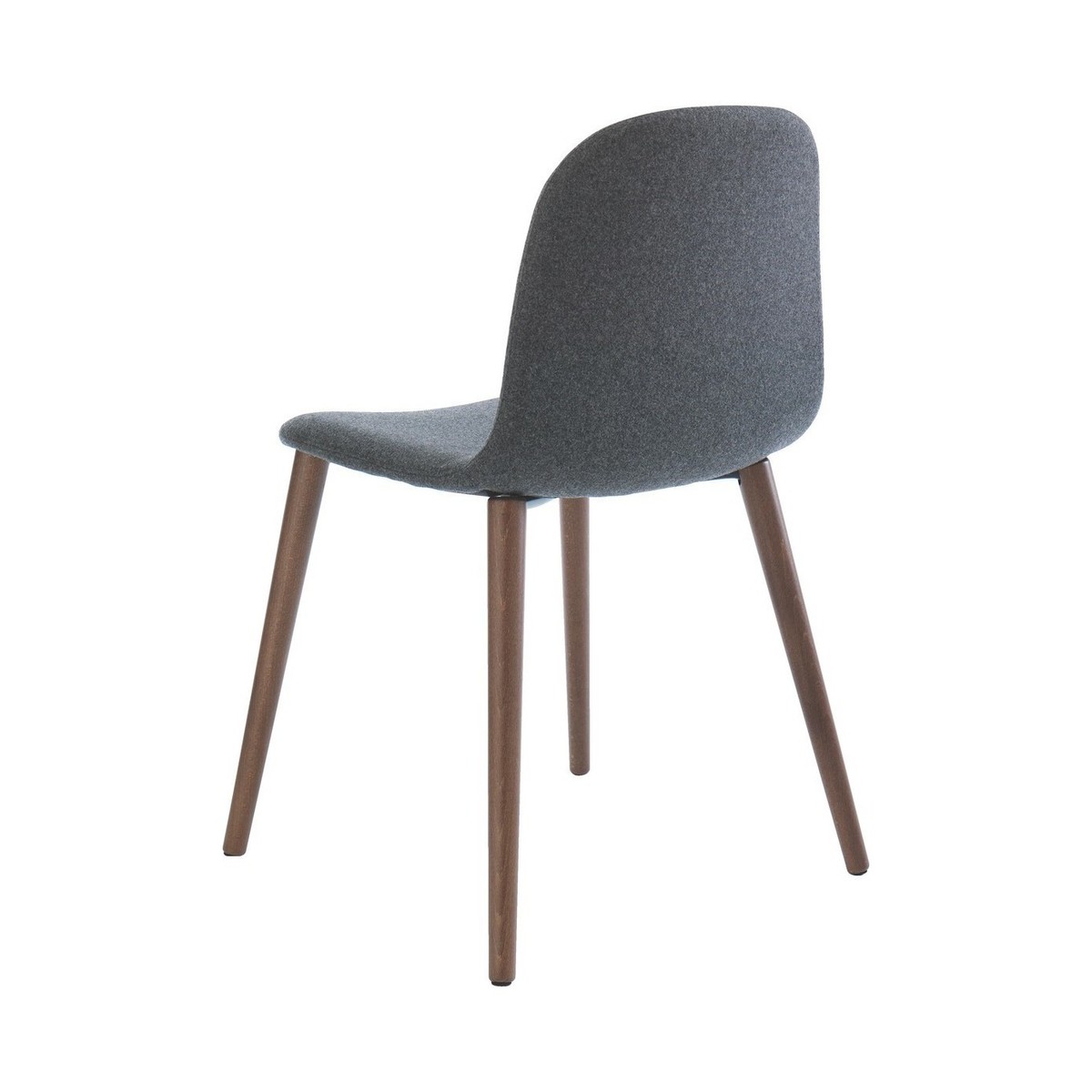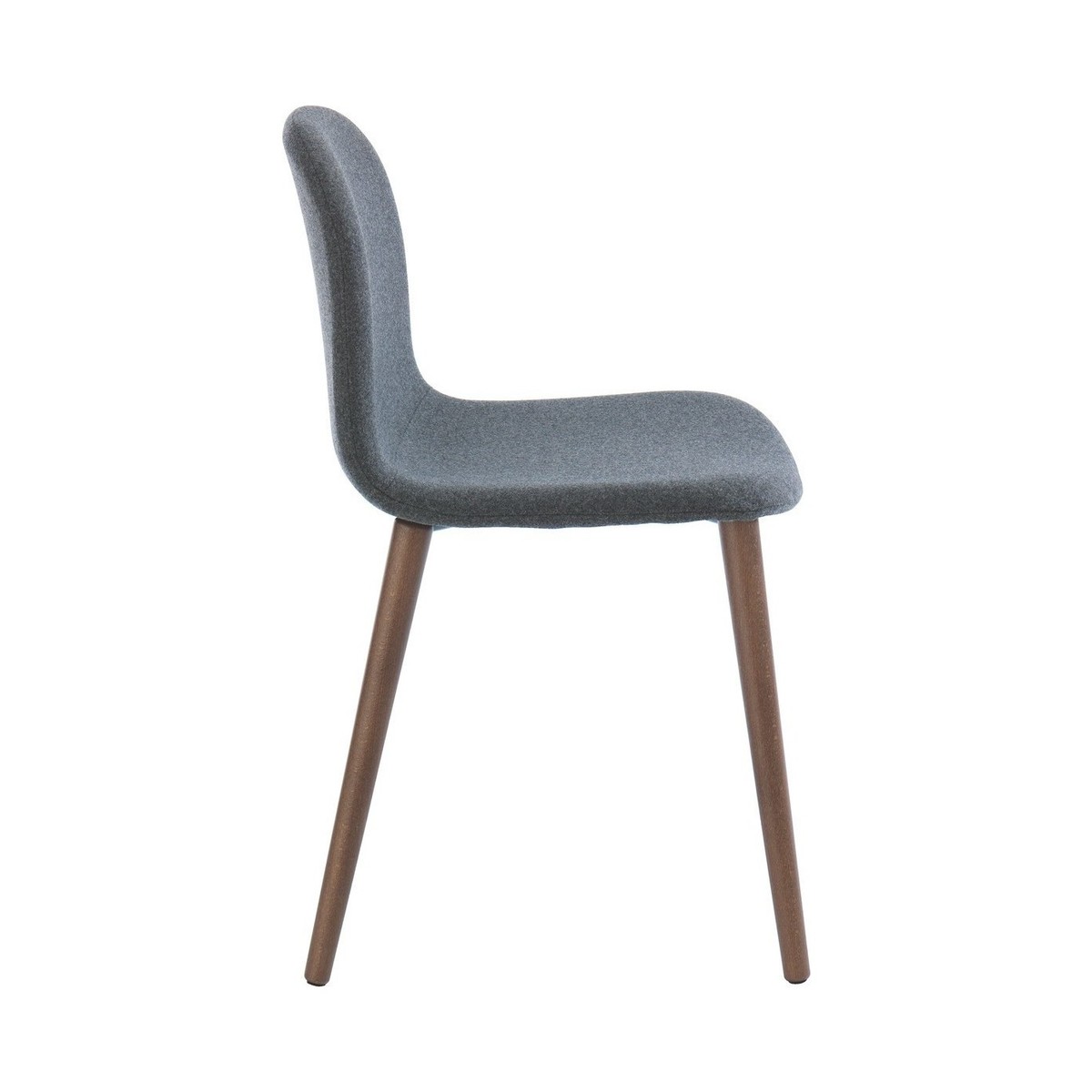 The elegant Bacco grey wool dining chair with walnut-stained legs has a gently rounded back for a more comfortable sit and slender, gently splayed legs.;Exclusive to Habitat, the chair has a contemporary slim profile that complements our walnut, high-gloss and metal dining tables.;The Bacco chair is also available with oak legs and with leather upholstery.