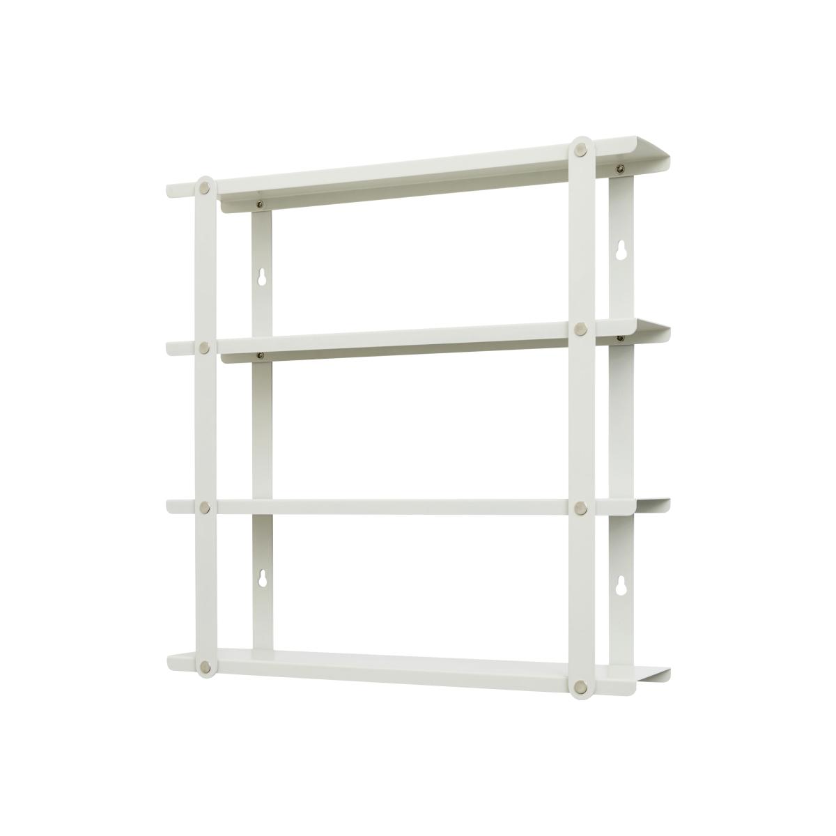 An industrial look for this small steel shelf in fresh, trendy colours. Compact and shallow (depth 8. 5 cm), this shelf is perfect for tight spaces. It sits on a piece of furniture or hangs on the wall. Its powder coating makes it water-resistant: it's ideal for bathrooms and kitchens. Thanks to its ingenious rivet assembly system, it folds easily and is delivered flat. Versatile, it fits in anywhere in the house to store or display your most beautiful objects. You can put jars and spices on it in the kitchen, beauty products in the bathroom, keys in the hallway. You can put a collection of model figures on it in the children's bedroom, vases and candlesticks in the living room.