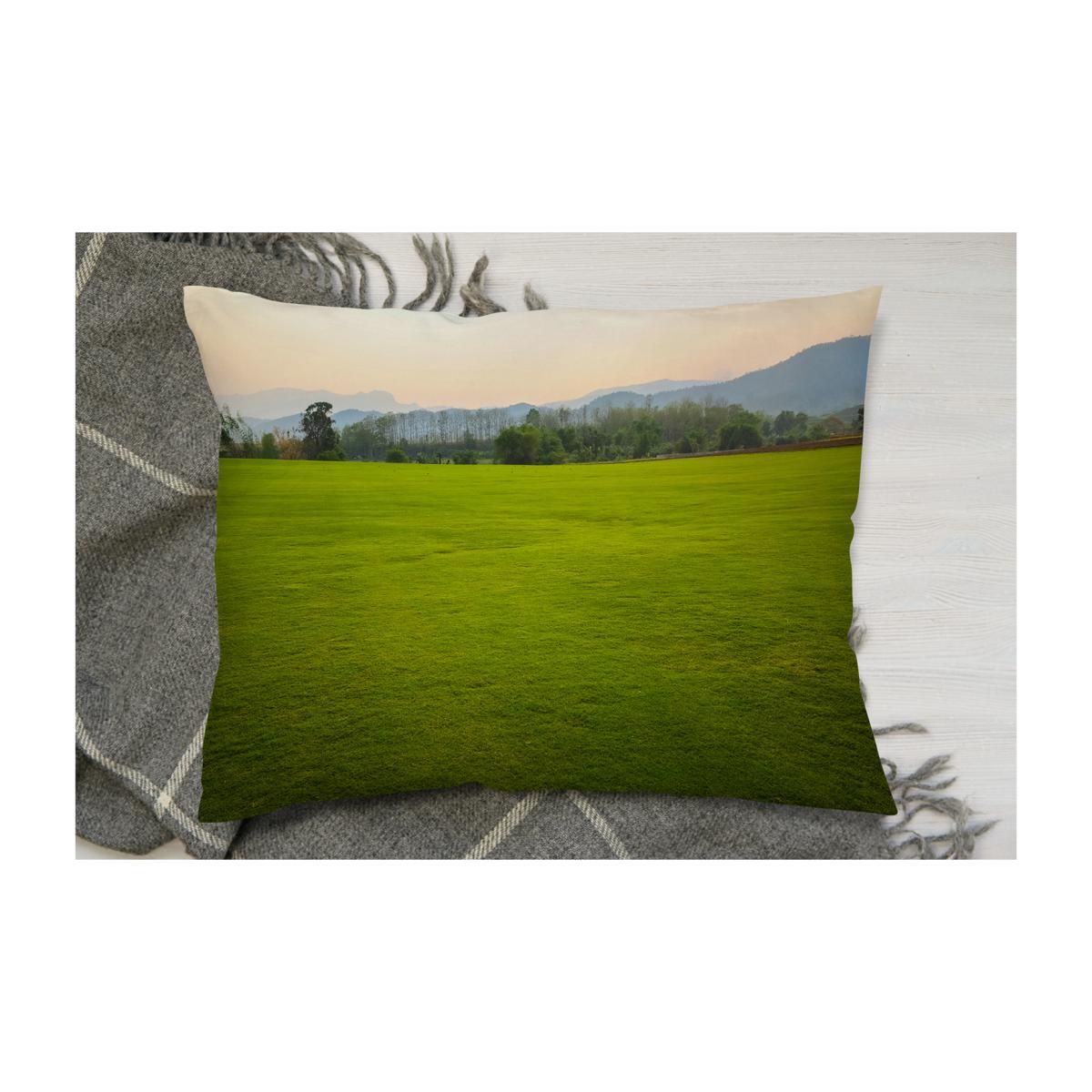 Background Image Of Lush Grass Field Cushion - Green