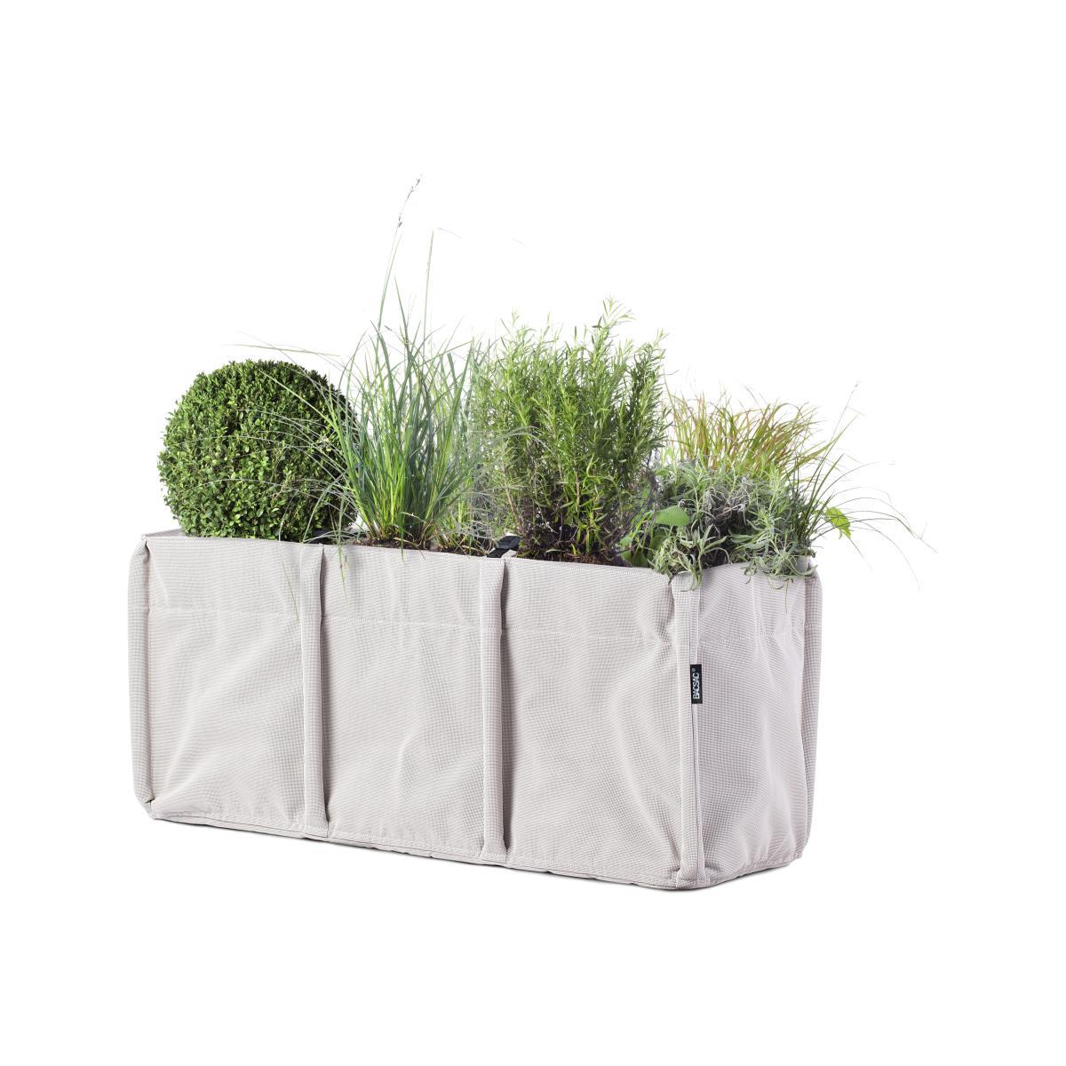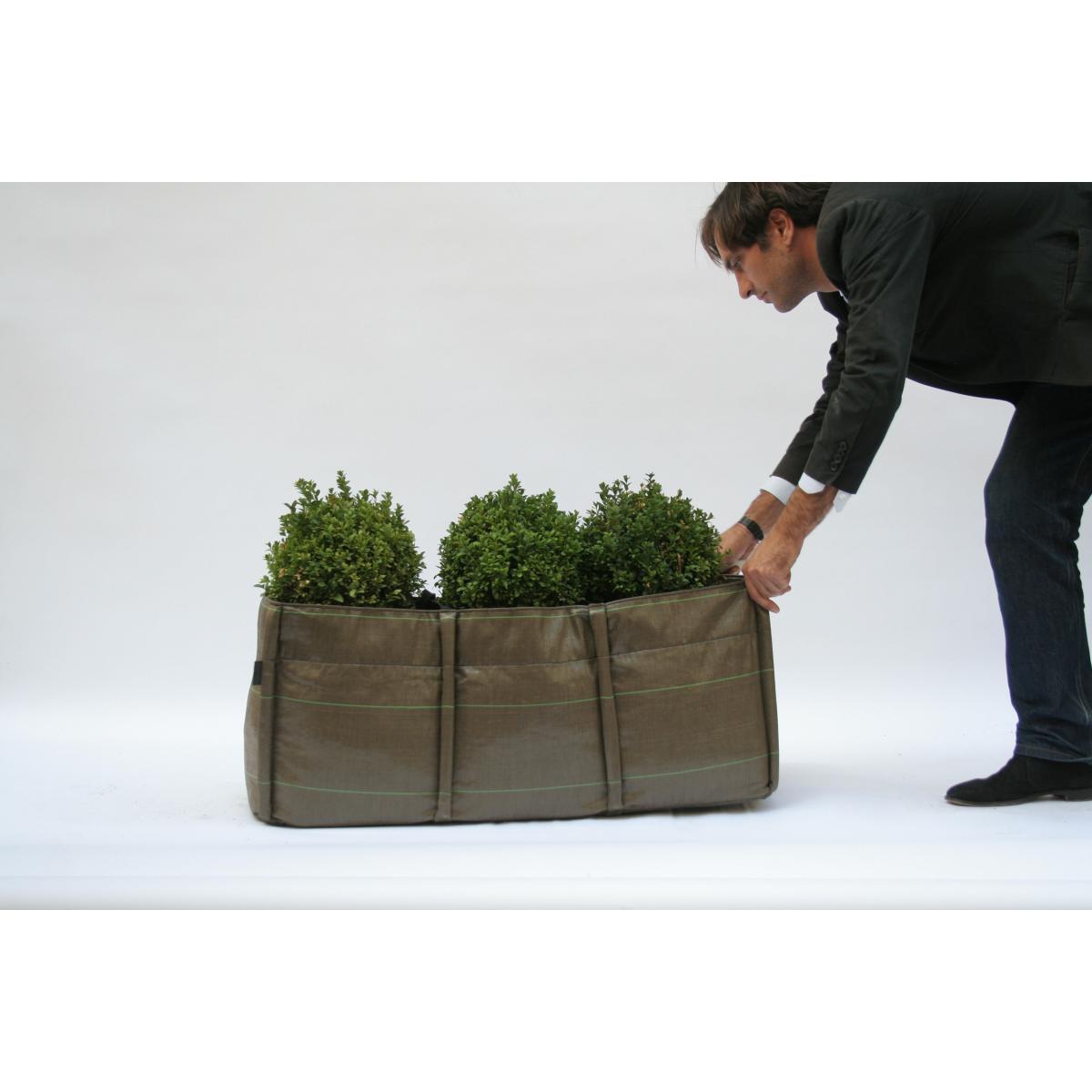 Nature's in the bag! The French brand, Bac. Sac, offers a collection of fabric flower pots with an urban and casual look. These, ultra light and portable flexible bags are a designer alternative to traditional pots that are too cumbersome and unaffordable. This Bac Sac window box is made from Batyline® cloth. This water- and air-permeable fabric encourages the growth of plants: it limits evaporation, lets the soil breathe and protects the roots. The technically-advanced double wall maintains the balance required between the air, soil and water. Inside a combination of hydrophilic felts protects the roots, absorbs and spreads out the water. Bac Sac therefore gets close to the conditions of a plant in open ground. Extremely resistant, the Bacsac window box has nothing to fear from impacts or frost. The fabric is resistant to wear and tear, UV rays and extreme temperatures (-30°C to 70°C). This "featherweight" window box can be moved very easily, even when it is full. The practical planter folds up in the blink of an eye to be stored anywhere and is machine washable. On the top of the window box are two straps which mark out three growing areas. Place the soil and the plant directly in the BACLONG bag. Adjust the straps to adjust the edges vertically. The BACLONG bags are able to easily mark out spaces or create a plant screen. They are sufficiently deep for vegetable plants, climbers or shrubs to be able to grow in them. The Bacsac flowerpots are available in a variety of sizes, in free-standing or hanging versions. Something to create a real little piece of nature in the city as well as the country. WHY DO PLANTS GROW BETTER IN A BACSAC THAN IN A TRADITIONAL POT? The complex BACSAC® textile allows the soil and the roots to breathe, therefore getting closer to the conditions of a plant in open ground. This air circulation avoids overheating seen in traditional pots during heat waves, which is harmful for roots and soil micro-organisms. It regulates the humidity by allowing excess water to drain and evaporate. In a traditional pot, the roots grow in a spiral along the wall and create a root coil which, in the long term, causes the roots to be strangled and weakens the plant in winter in the event of frost. In a BACSAC®, the root system is more dense and more balanced as when the root reaches the fabric wall, upon contact with the air, it stops and the plant grows new roots. The roots will, as such, seek nutrients throughout the surface of the clump of soil, encouraging the plant to grow uniformly.