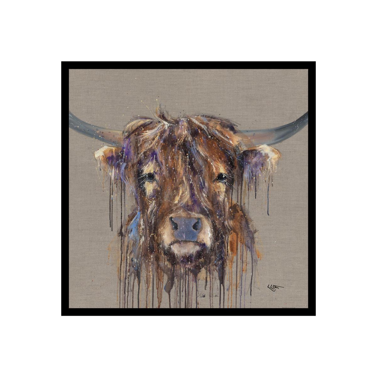 Leave boring interior days in the past with the Bad Hair Day Framed Picture. With its unique interpretation of naturalism, this artwork captures the Highland cow in a colourful and joyful way. Why you'll love it. Quirky design with plenty of personality and style. The Highland cow is a rustic breed of steer from the Scottish Islands. Reproduced from original artwork by Louise Luton. Hand-embellished on a beautiful linen canvas. Elegantly enclosed in a large dark grey frame with silver detailing. What you need to know. A paper print on an MDF back board. Metal hanging fitting with a nylon cord. Hand-finished with acrylic gel. Dimensions. Height: 74 cm (29 in). Width: 74 cm (29 in).
