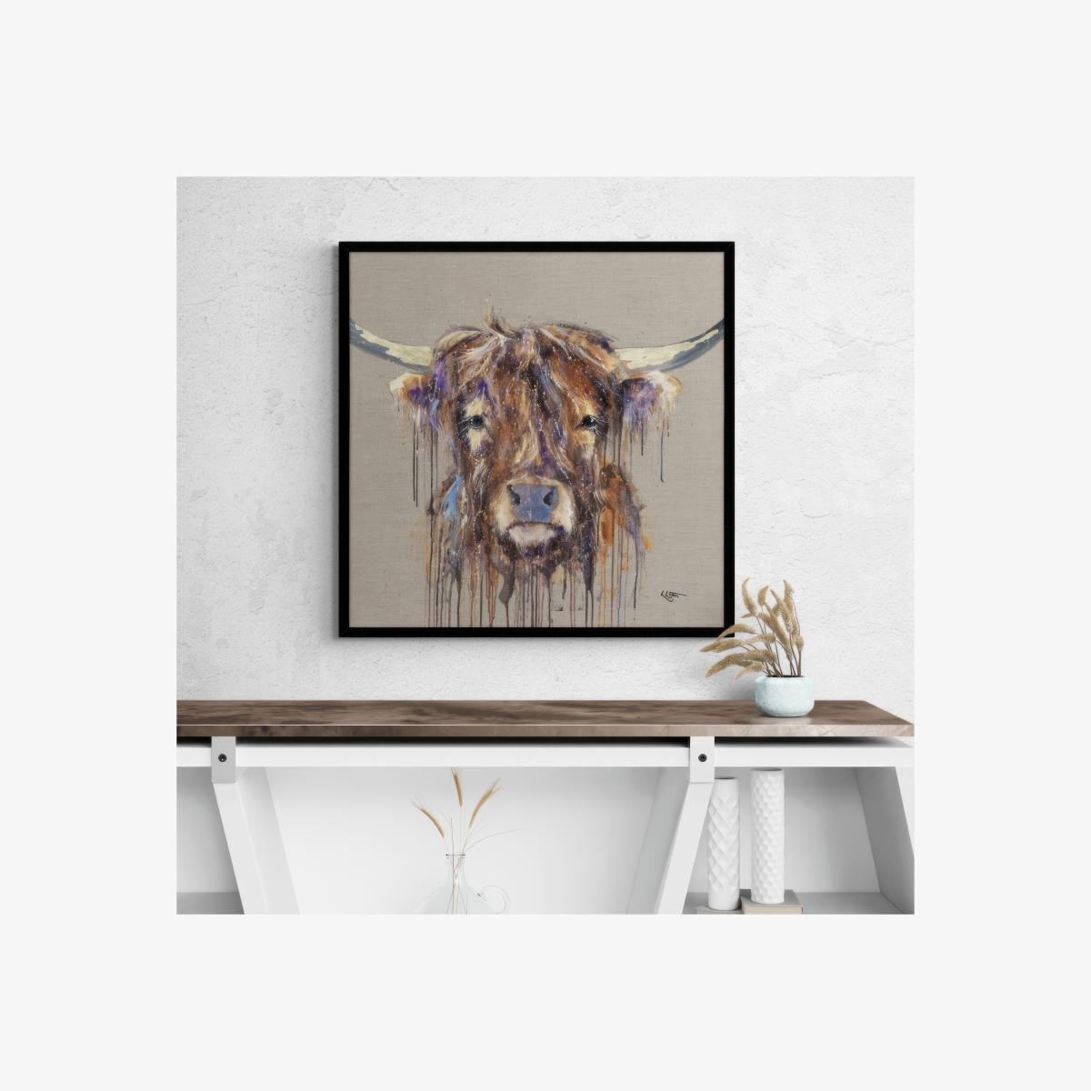 I love this piece for its playful, contemporary vibe-perfect for adding personality to a living room, bedrooms, or even a quirky office space. The bold, slightly humorous subject makes it a great conversation starter, while its large size ensures it becomes a focal point. It works well in eclectic, modern, or casual interiors, especially when paired with minimalist furniture to let the artwork stand out. For styling tips, consider hanging it at eye level above a simple console or sideboard, and keep surrounding decor understated to let the art shine. If you want to get creative, introducing small accents in complementary colours nearby can help tie the room together.