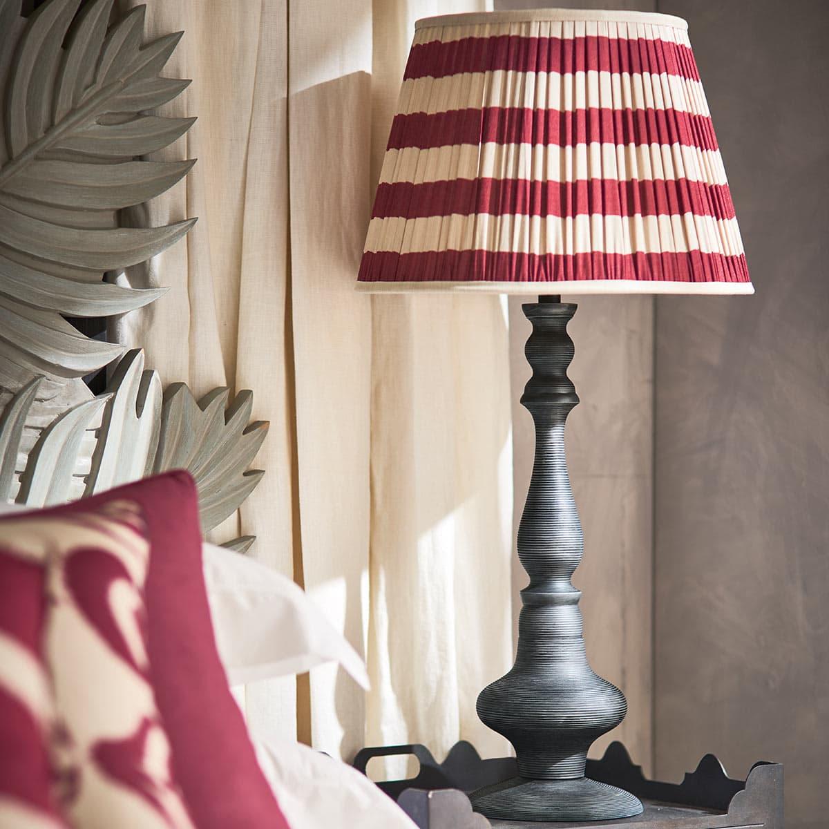 I love this grey table lamp for its versatile and timeless appeal. The muted colour makes it easy to incorporate into various interiors, from traditional to contemporary styles. Its sculptural base adds visual interest without overwhelming the space. Perfect for side tables, consoles, or even a desk, this lamp provides both functional lighting and a decorative highlight. To style effectively, try pairing it with neutral or monochrome accessories for an understated look, or add colourful textiles nearby for a more eclectic vibe. Keep the shade clean and crisp to maintain its classic charm or consider a textured or patterned shade for a more personalised touch.