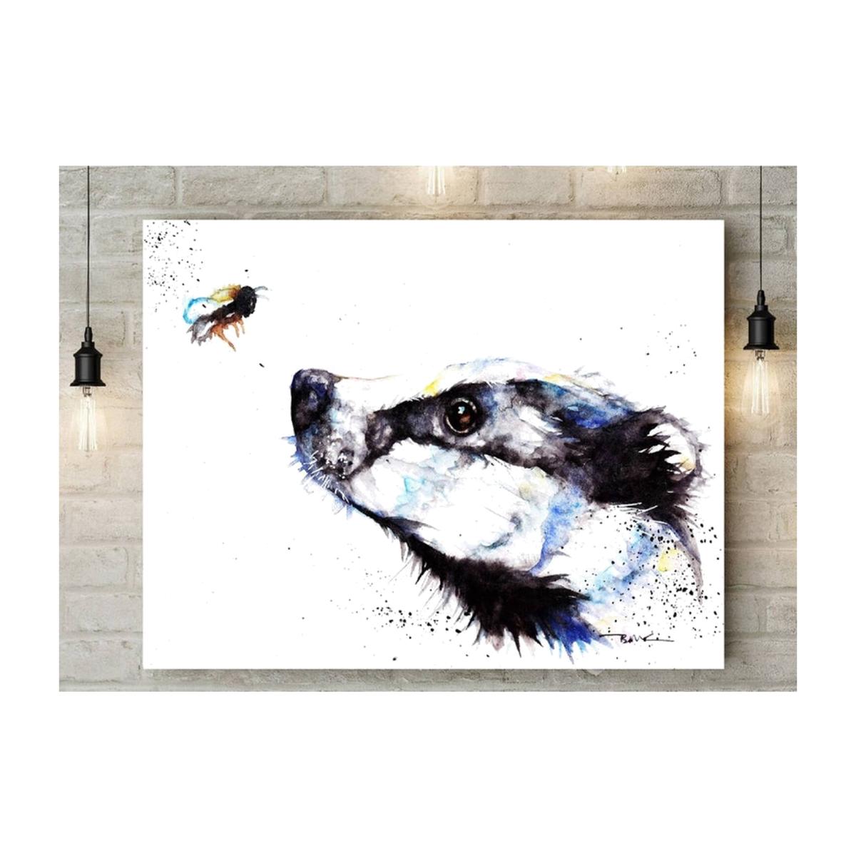 Inspired by the beauty of nature, Be Coventry originally painted this whimsical scene of a Badger and Bee in professional watercolours. Now recreated in print on a box canvas, this artwork will enhance any room in your home. The watercolour design is printed onto 260gsm Matte Polyester canvas, and attached to quality pine timber. The canvas is taped on the rear and is supplied with a wall-hanging kit.