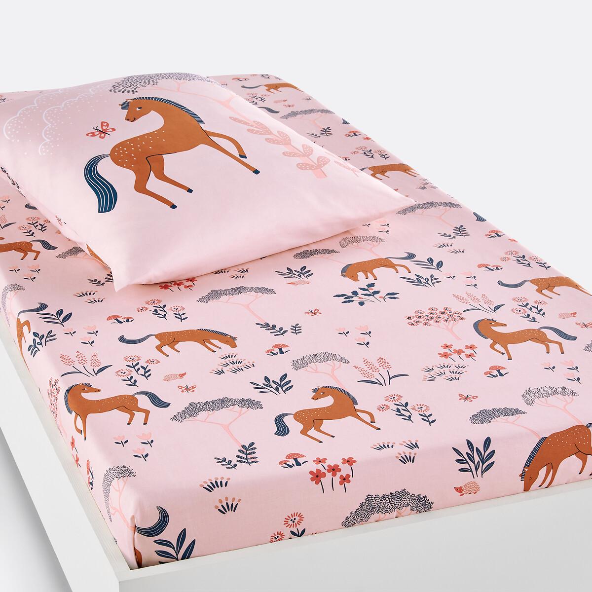 Look in the park, amongst the trees and bushes, and you might find the queen's beautiful horses. The Bagatelle pillowcase is made of pure cotton. A signature design by La Redoute Interiors. Its bright colour goes easily with all decorations, its refined designs develop children's imaginations. Cotton is part of our daily lives. We love it for its suppleness and softness. Easy Care, it is ideal for the beds of young and old alike!Product Details • 100% cotton • 144 thread count • For mattress height 25cm. Change up your bedding look for each season by mixing and matching this range with plain items from our Scenario bedding collection. Care Advice • Machine washable at 60°C • By washing your laundry at 40°C instead of 60°C, you limit energy consumption. Dimensions • 90 x 140cm: Adjustable bed • 90 x 190cm: Single • 140 x 190cm: King • 160 x 200cm: King • OEKO-TEX® Standard 100. Standard 100 certification by OEKO-TEX® tests textile products for harmful substances via an independent, international label.