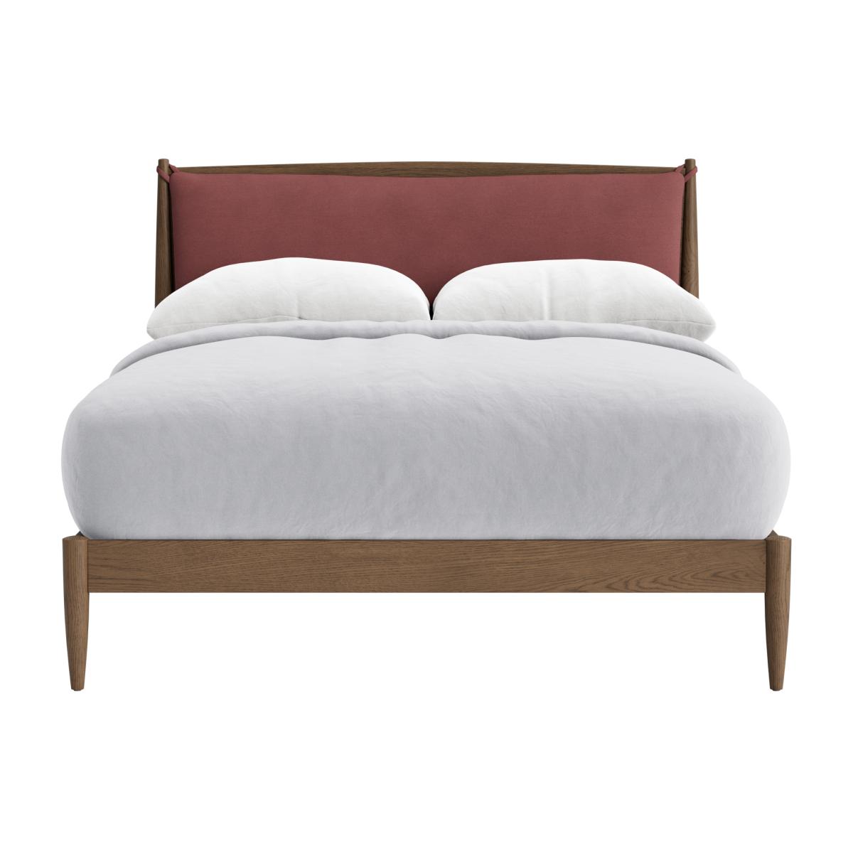 I love this bed frame for its warm dark oak finish and the inviting berry jelly cotton headboard - it’s a great way to add colour and texture to a bedroom without feeling overpowering. It works really well in contemporary, Scandinavian, or even eclectic interiors, where natural materials and rich tones are key. Practical styling tips include pairing it with crisp white or neutral bedding to let the headboard pop, and layering with cosy throws and cushions in complementary colours or textures. The clean lines and understated elegance also make it easy to incorporate into various colour schemes and styles, making it a versatile centrepiece for a restful, stylish bedroom.