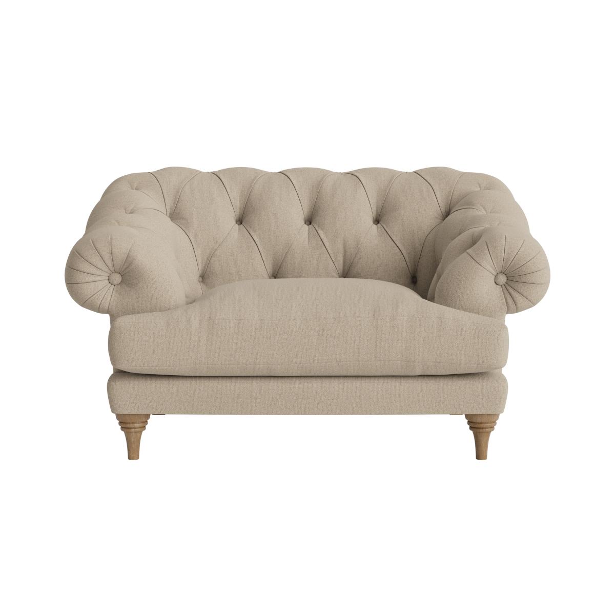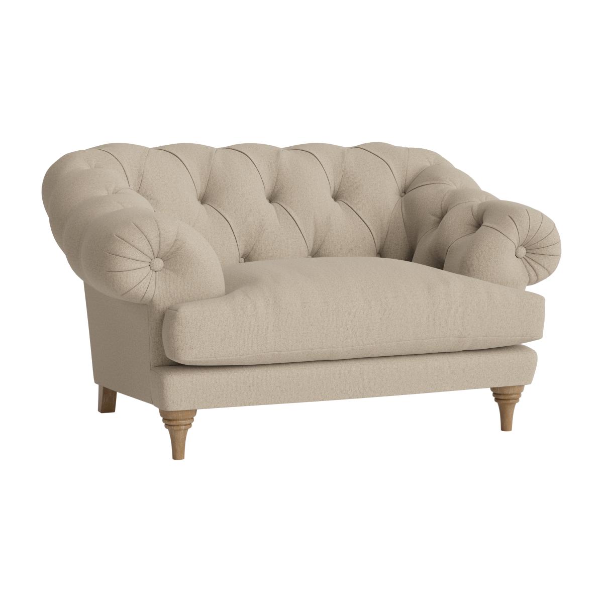 I love the Bagsie love seat for its classic Chesterfield-inspired design, which instantly adds a touch of timeless elegance to any living space. Its compact size makes it ideal for smaller rooms or cosy corners, while the neutral upholstery ensures versatility across various interior styles - from traditional to modern eclectic. Styling tips include pairing it with layered textiles like textured cushions or throws to soften its formal shape, and placing it alongside vintage or mid-century pieces to create a curated, lived-in feel. Its practical design works particularly well in lounge areas, bedrooms, or even as a chic statement piece in a hallway or reading nook.