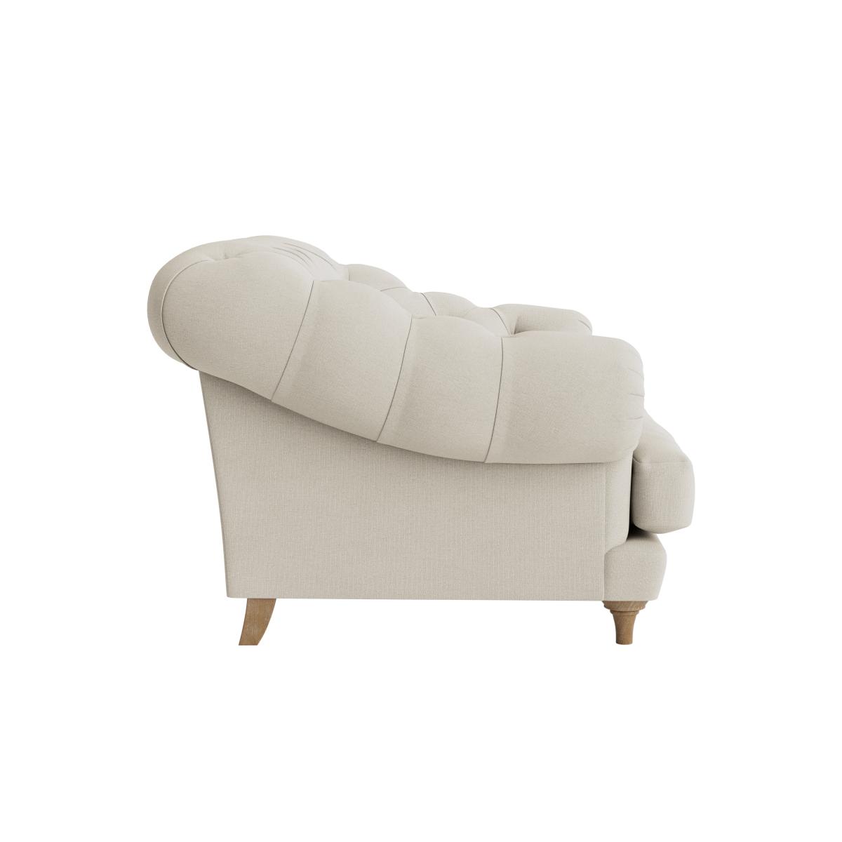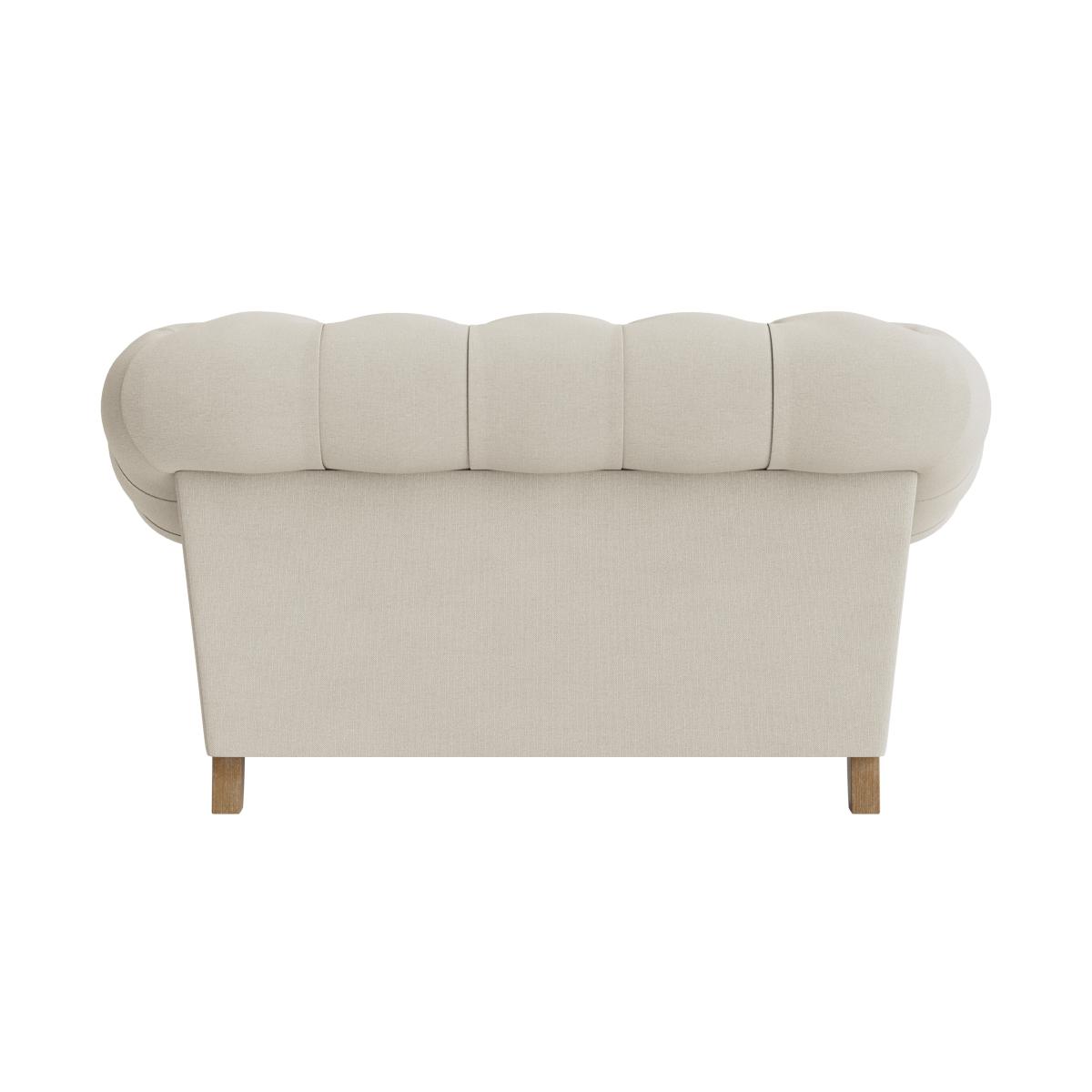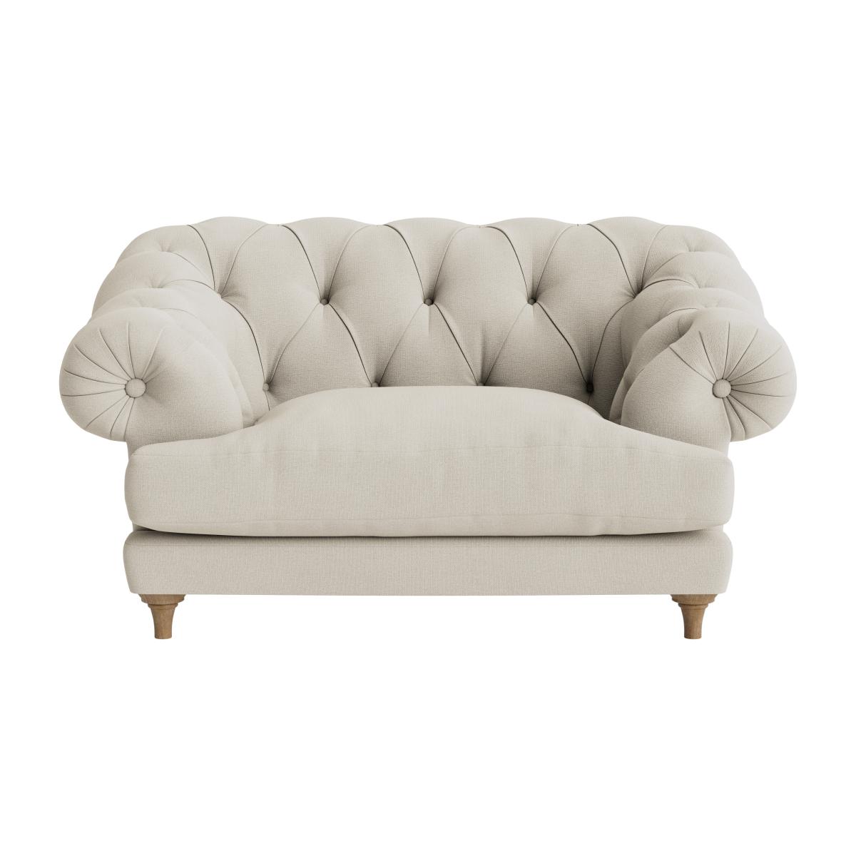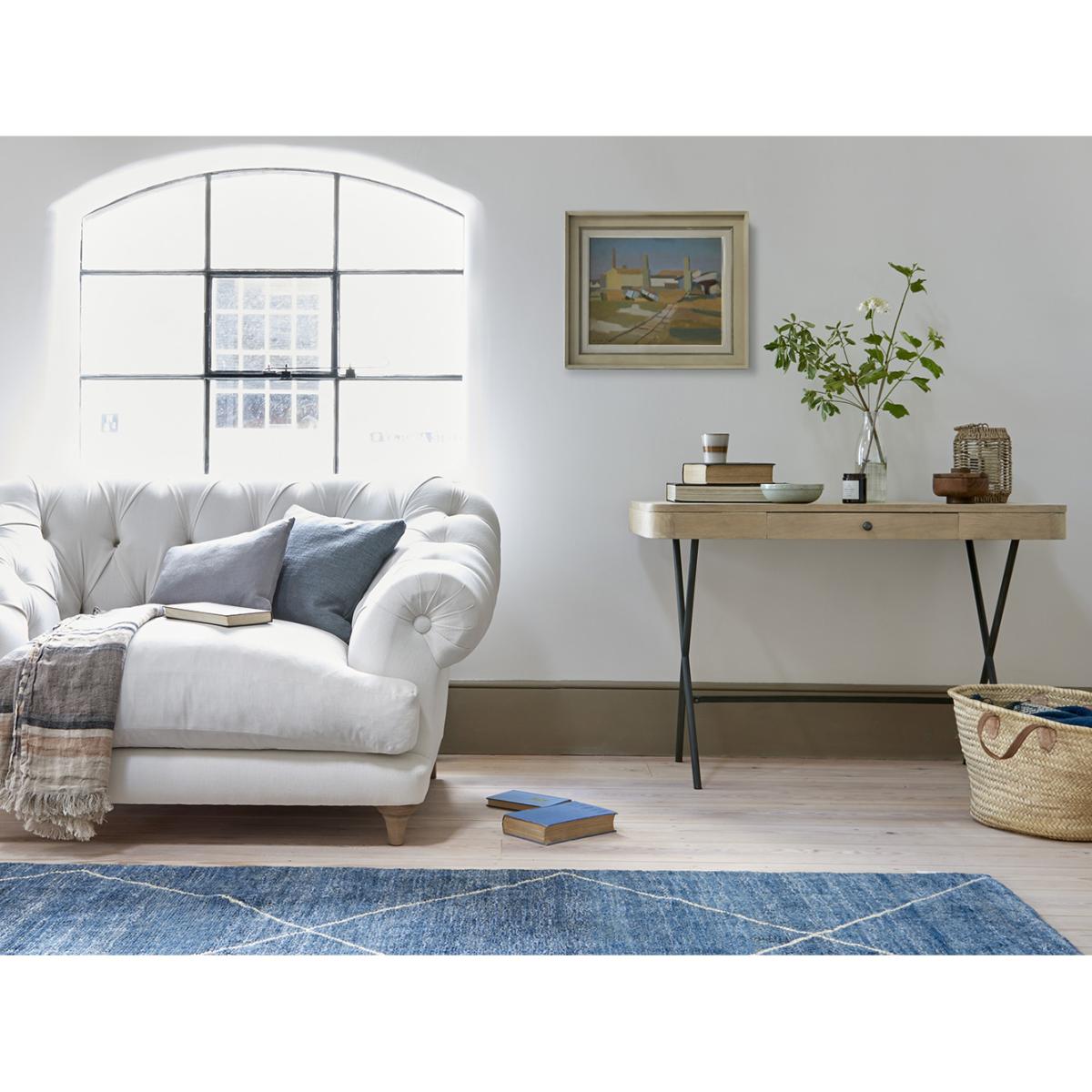 I love this love seat - its classic, chesterfield-inspired design brings a timeless charm to both traditional and modern interiors. Its plush, tufted back and arms create an inviting, cosy feel, making it perfect for cosy living rooms or even bedroom seating nooks. It works especially well in eclectic, vintage, or country-style schemes, but, with the right accessories, it can seamlessly fit into contemporary spaces too. For styling tips, consider pairing it with neutral or soft-coloured accessories to highlight its craftsmanship, or add contrasting cushions and throws for extra personality. Its versatile charm means it can serve as a statement piece or a comfy everyday seat, depending on how you dress it.