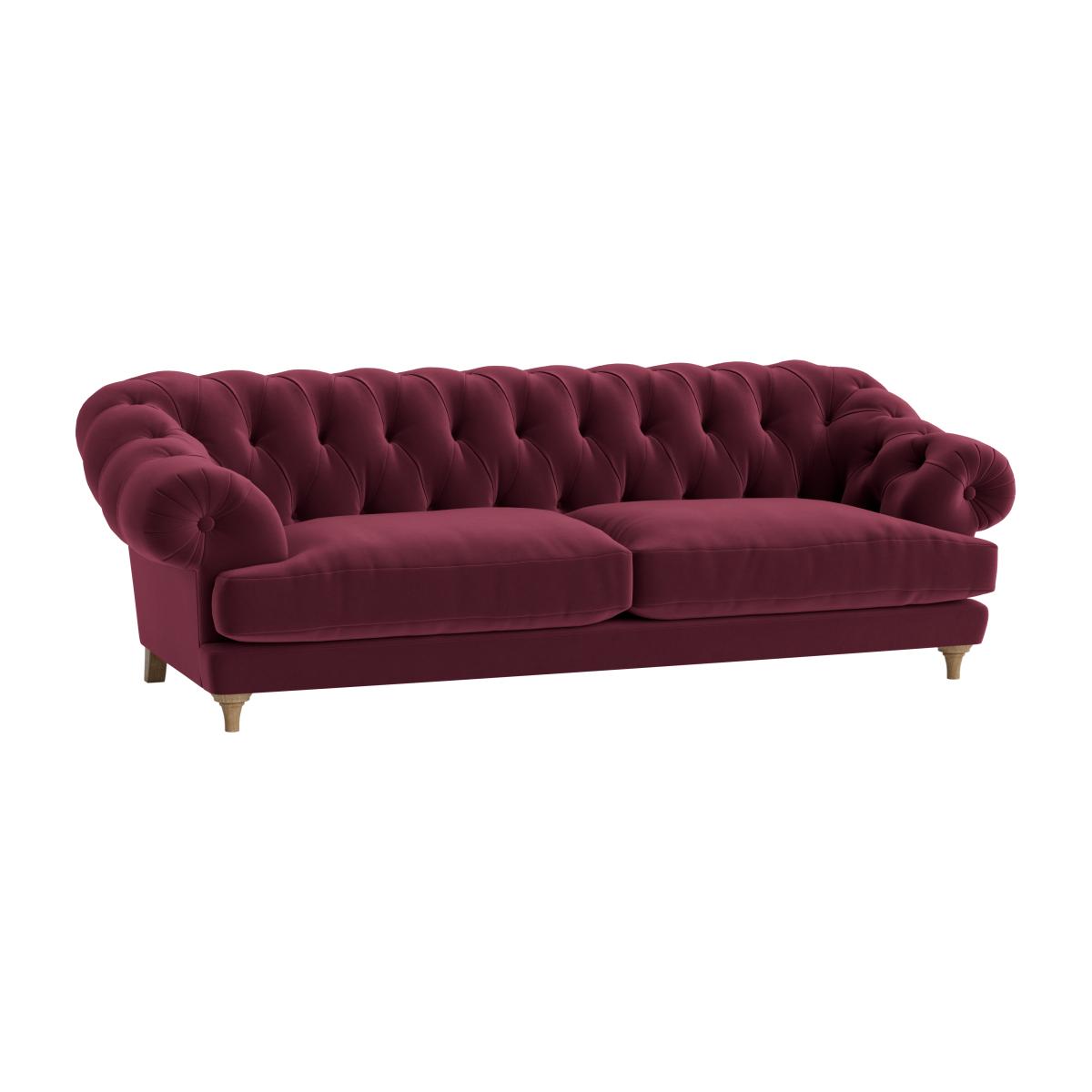 I love the Bagsie sofa for its classic, statement-making design with its deep button tufting and luxurious velvet finish. It works particularly well in traditional or eclectic interiors where its rich colour and bold silhouette can be a focal point, but it can also add a sophisticated touch to modern spaces if styled with contrasting minimal accessories. Practical styling tips include pairing it with neutral or metallic cushions to tone down or accentuate its boldness, and placing it against a plain wall to highlight its shape. To keep it looking its best, consider using a plush, textured rug underneath and keeping the surrounding decor sleek and understated, allowing the sofa to shine as the centrepiece.