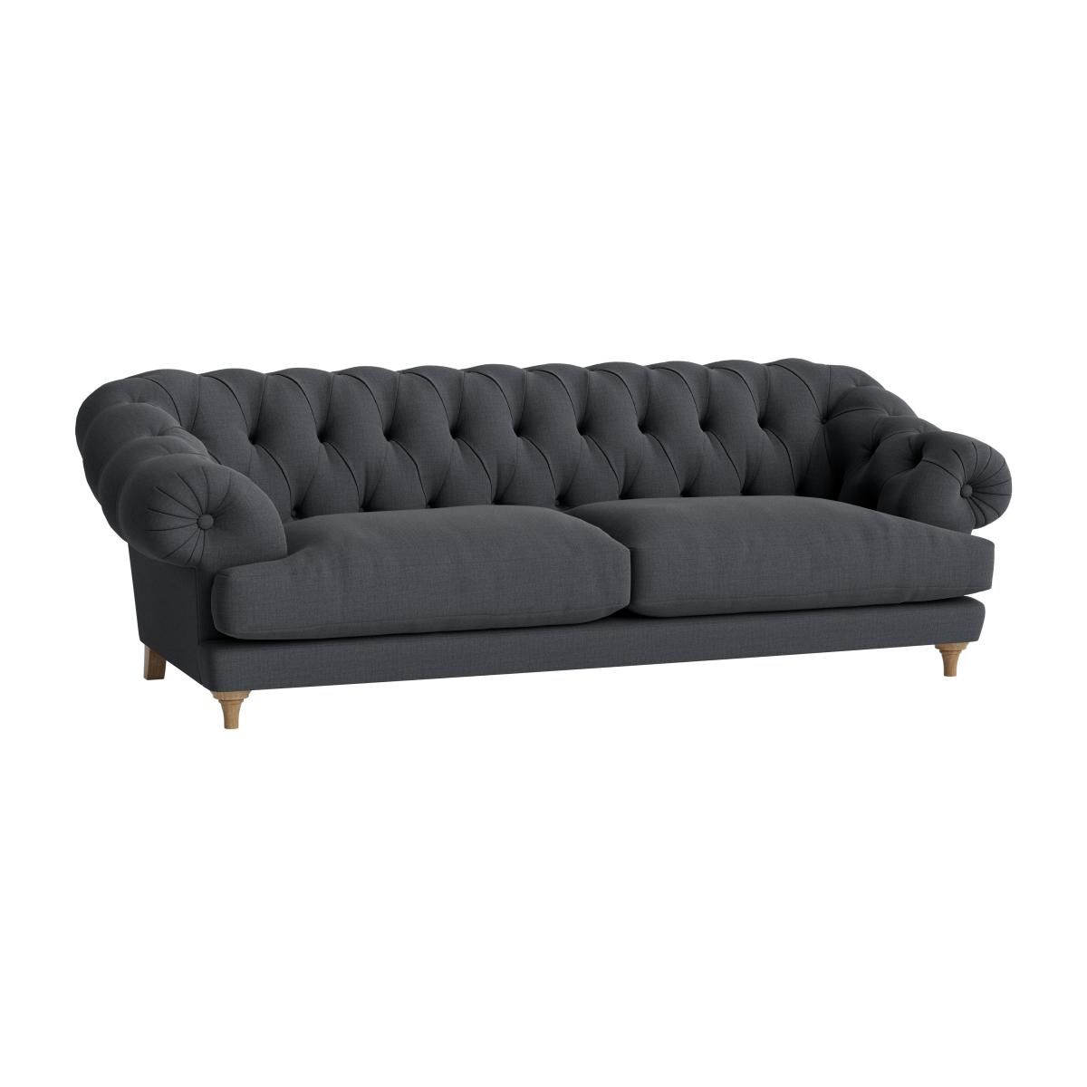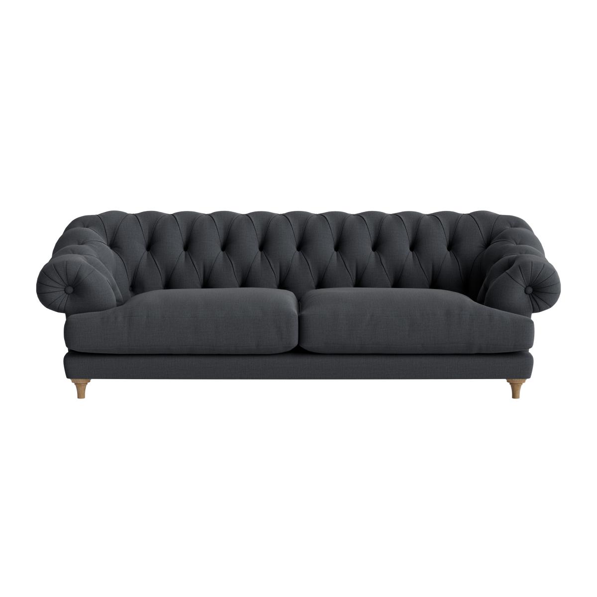 I love this sofa for its timeless, classic appeal paired with a contemporary edge. Its plush, button-tufted design makes it an ideal statement piece for traditional or transitional interiors, but it also works well in more eclectic, relaxed spaces. The shape and deep cushioning can be styled with a mix of textured throw pillows and cosy blankets to create an inviting feel. Practical styling tips include balancing the bold silhouette with neutral or muted-toned accessories and placing it in a room with warm lighting to emphasise its plush upholstery. Its versatile aesthetic lends itself to both formal living rooms and more casual lounging areas, making it a reliable choice for a range of interior styles.