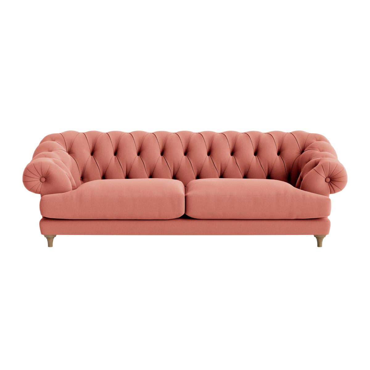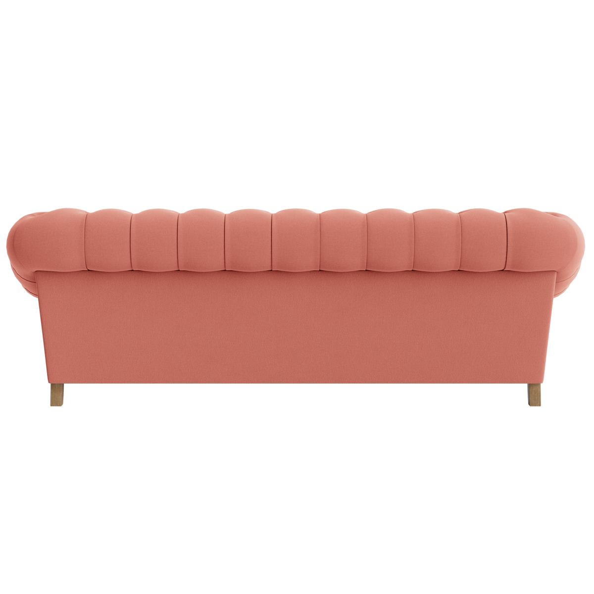 I love this sofa for its classic Chesterfield silhouette, which adds timeless elegance to any living space. Its soft, upholstered finish in a warm coral tone makes it versatile enough to work in both contemporary and traditional interiors. To style around it, consider pairing it with neutral or lightly patterned cushions to keep the look balanced. Practical tips would include placing it in a well-lit corner or creating a cosy reading nook with a side table and a floor lamp. This piece works particularly well in eclectic, vintage-inspired, or contemporary schemes, bringing both comfort and character to the room.