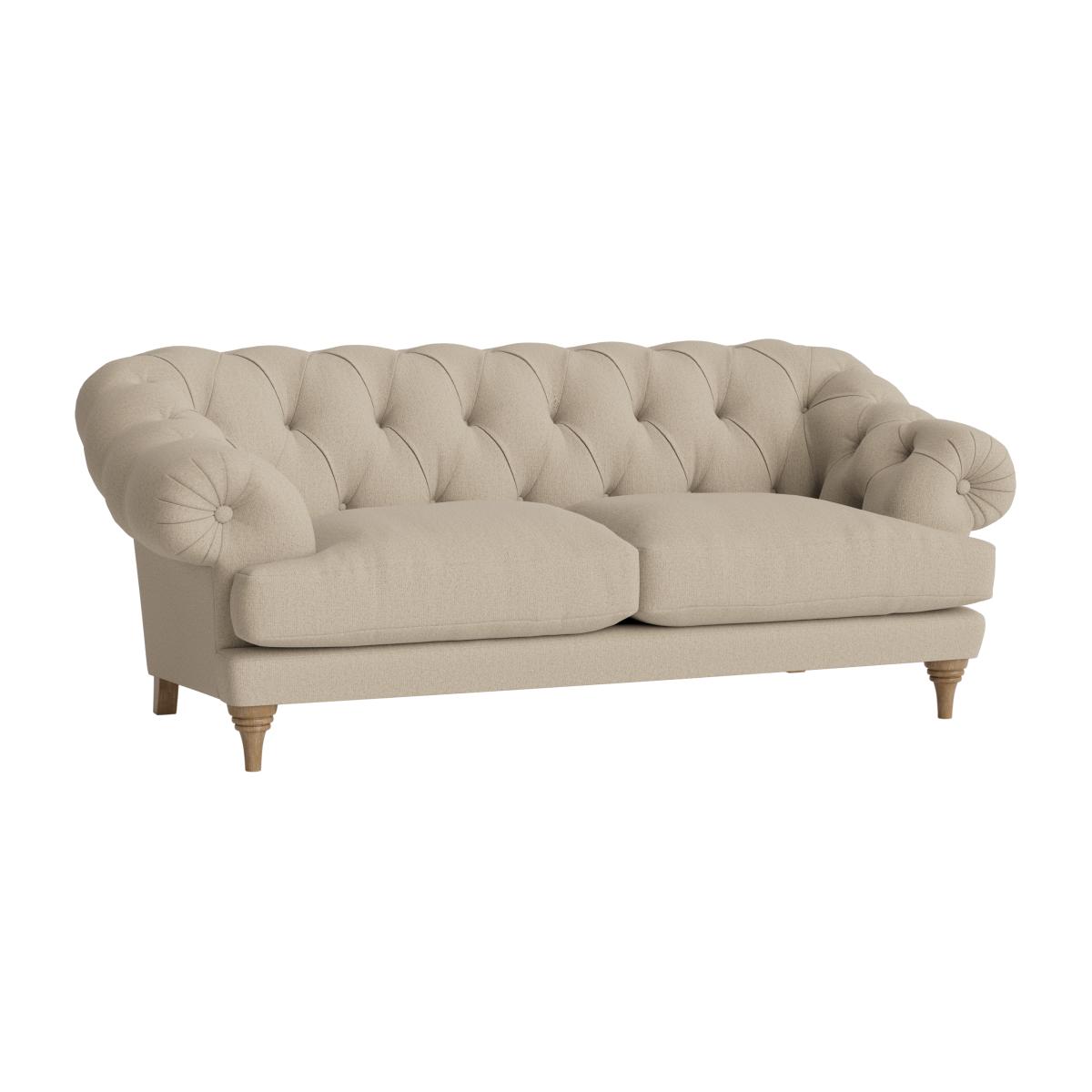 I love the Bagsie sofa for its timeless, classic design with the deep button-tufted back that adds a touch of elegance. It works particularly well in traditional or transitional interiors, but its neutral colour makes it versatile enough for more contemporary spaces as well. When styling, consider pairing it with soft, textured throws and cushions in complementary colours to create a cosy look. For a more polished appearance, add a sleek coffee table and statement lighting. Its compact size makes it great for smaller living rooms or as a statement piece in an open-plan space. Practical tip: since it’s a light colour, adding darker or vibrant accessories can help conceal inevitable day-to-day wear and tear.