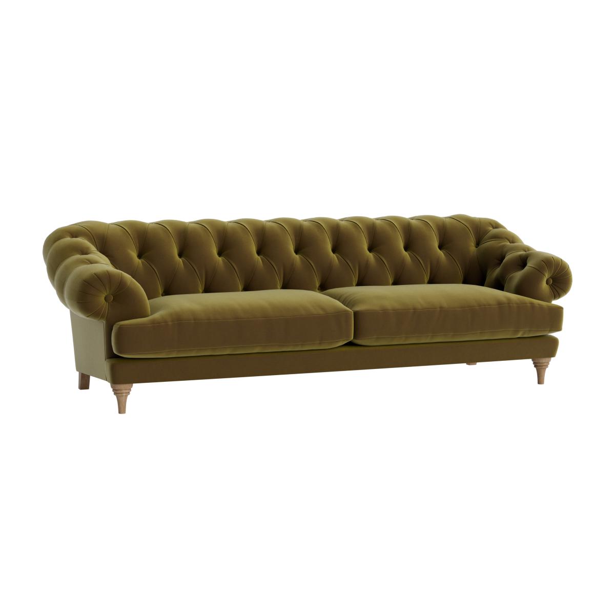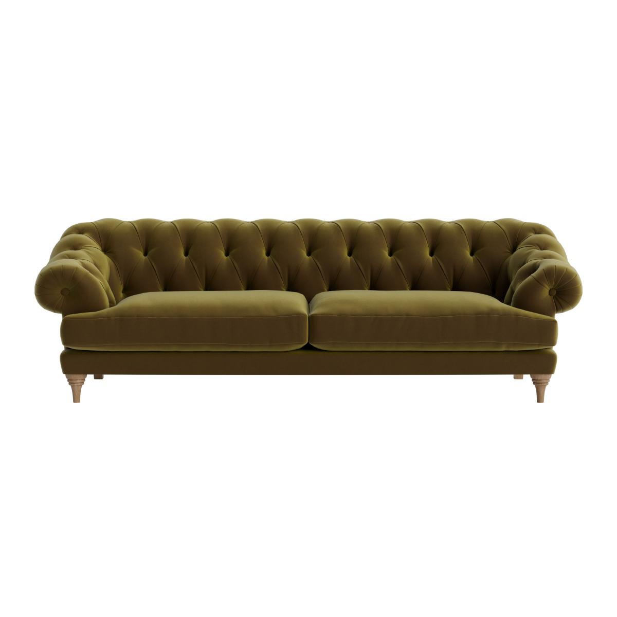 I love this sofa for its classic, timeless appeal and the plush tufted design, which adds a touch of luxury without feeling overly formal. It works particularly well in vintage-inspired, eclectic, or mid-century interiors where its statement shape can shine. The rich olive colour makes it versatile enough to pair with both bold accents and neutral palettes. Practical styling tips include layering with textured cushions or throws to soften the look and add comfort, and positioning it against a neutral or patterned wall to highlight its distinctive silhouette. This piece is a great anchor for a cosy sitting area, especially in spaces with natural materials and vintage accessories.