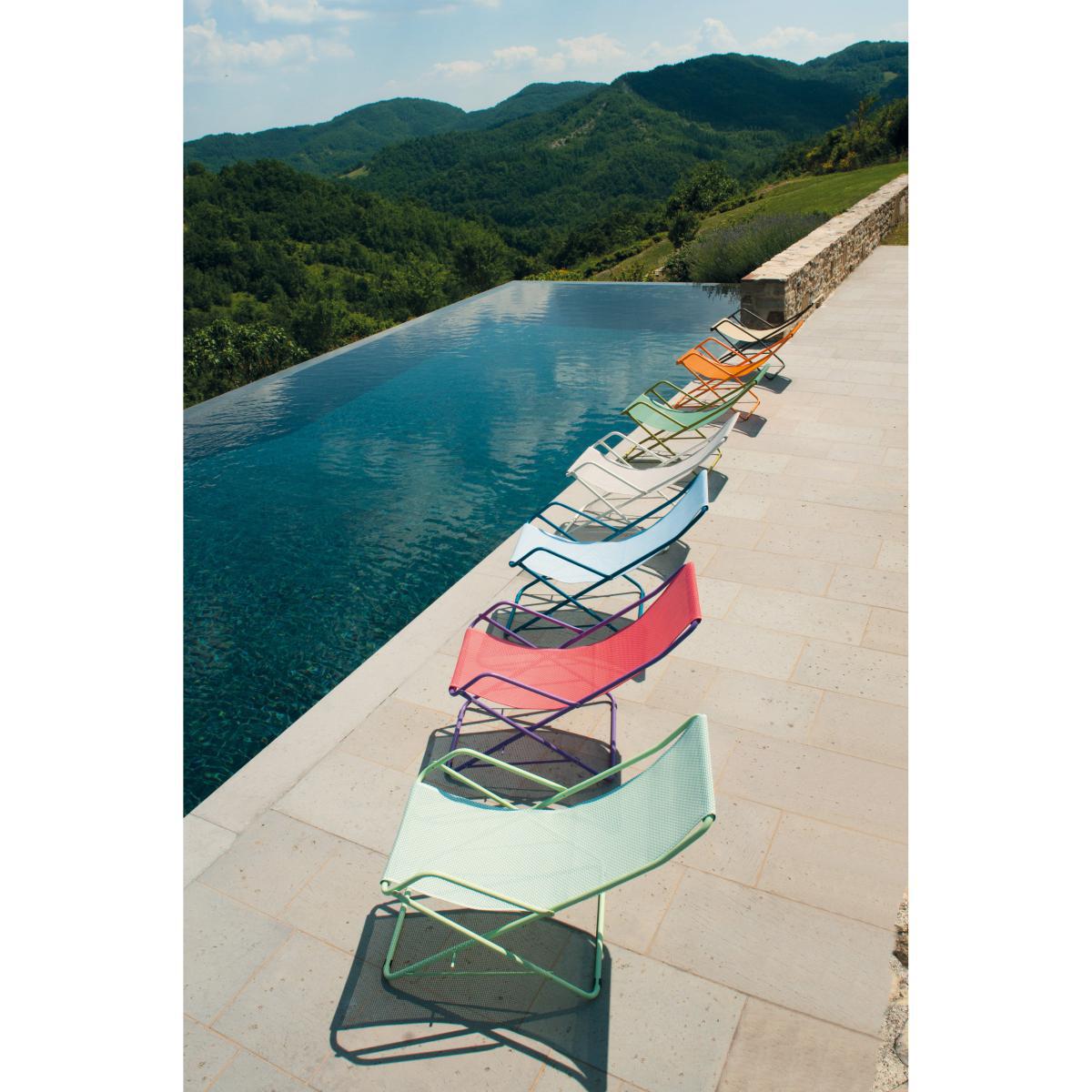 The Bahama deckchair is a classic EMU production. The fabric in outdoor material falls softly on the swinging frame. The deckchair, in carrying out of a pleasant oscillating movement, enhances moments of relaxation. The frame and components are available in different colour combinations.