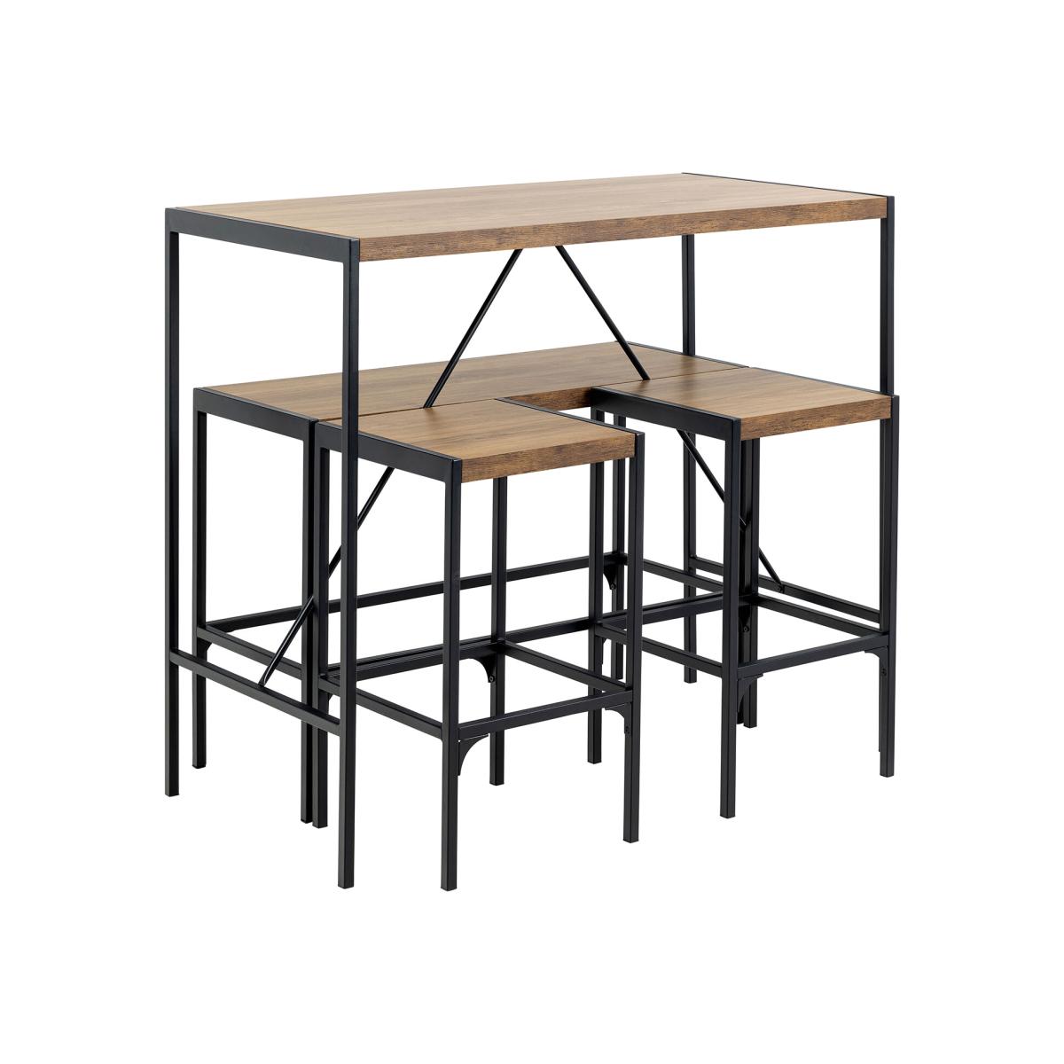 Dine in style with the Bahamas Bar Table Set. This set includes a bar table,¿two bar stools, and a bench to create a spacious dining space in your home. It's crafted with a rustic oak melamine top that sits on top of a robust black steel base to give an eye-catching industrial look to your home whilst you enjoy hearty meals with your loved ones.