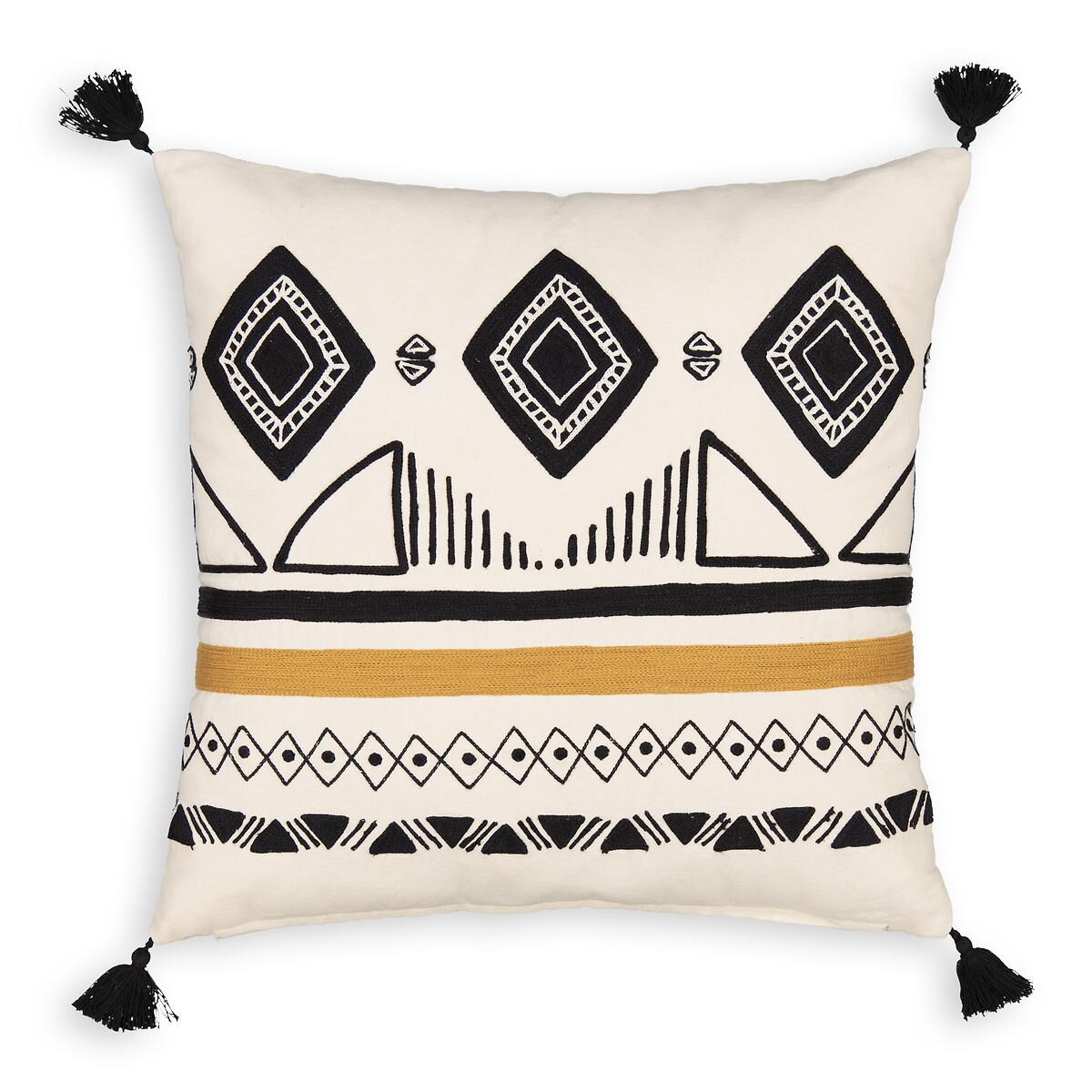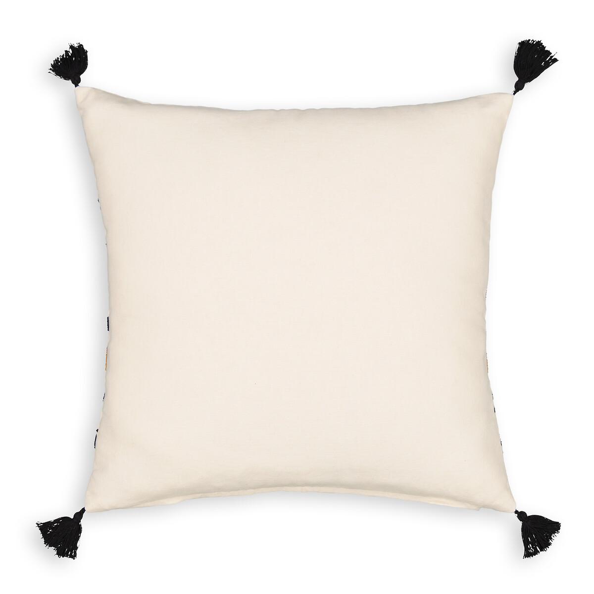 The Baia chain stitch cushion cover. This chain stitch cover is very graphic and on-trend!Product Details • 100% cotton • Chain stitch on ecru background • Black tassels on each corner • Zip fastening. Size • 45 x 45cm. • OEKO-TEX® Standard 100. Standard 100 certification by OEKO-TEX® tests textile products for harmful substances via an independent, international label.