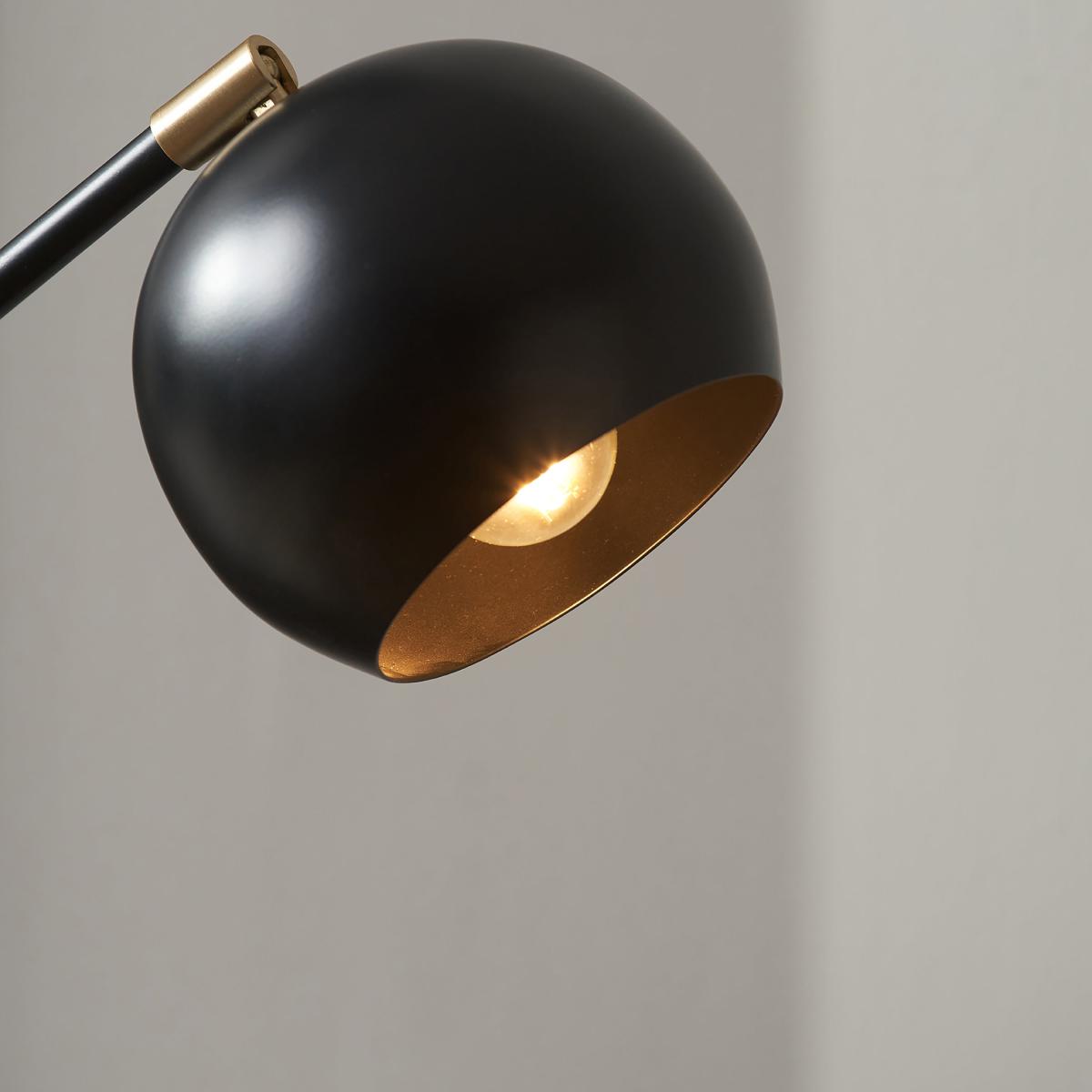 * Bulb required: 2 x SES (Small Edison Screw) - E14* Bulb(s) not included* Contemporary styling* Adjustable Head* 3m cable with a Foot Switch The Bailey 2 Head Floor Lamp seamlessly blends style and functionality with adjustable heads for precise illumination. Crafted in striking matt black with brass detailing, this floor lamp adds a contemporary look to any living space, offering both practicality and design.