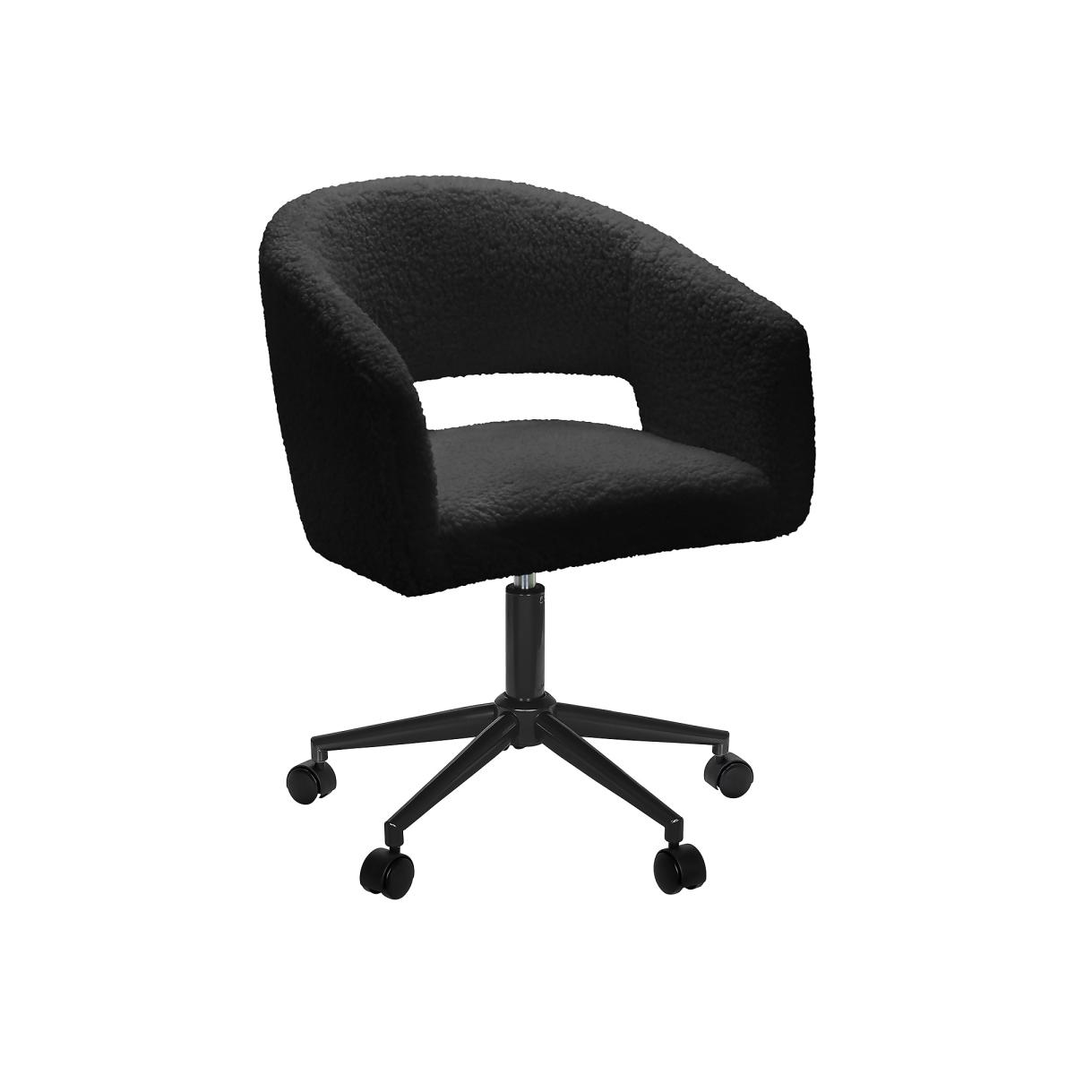 Add some elegance to you home office with our Bailey boucle office chair. Upholstered in sumptuously soft black boucle fabric and a padded wrap around back, this desk chair is as stylish as it is practical. The wheeled castor base adds to its manoeuvrability.