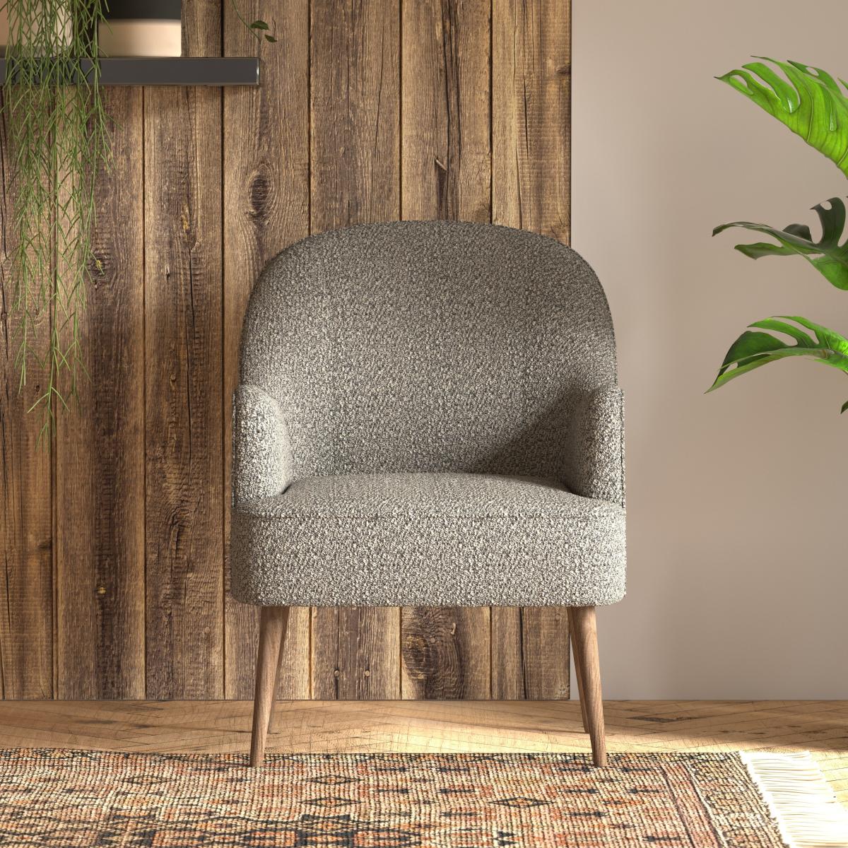 I love this chair because of its chunky, woven texture and versatile charcoal tone, which makes it quite adaptable across various interiors. It works particularly well in both modern and Scandinavian-inspired schemes, adding a cosy, tactile element without overwhelming the space. For styling, consider placing it in a living room corner paired with a simple side table and soft throw cushions, or use it as a statement piece in a bedroom nook. To keep the look cohesive, layer with natural textures like woven baskets or wooden accents, which will enhance the earthy feel of the weave and wooden legs. It’s a practical choice for a space that demands stylish comfort with an understated aesthetic.