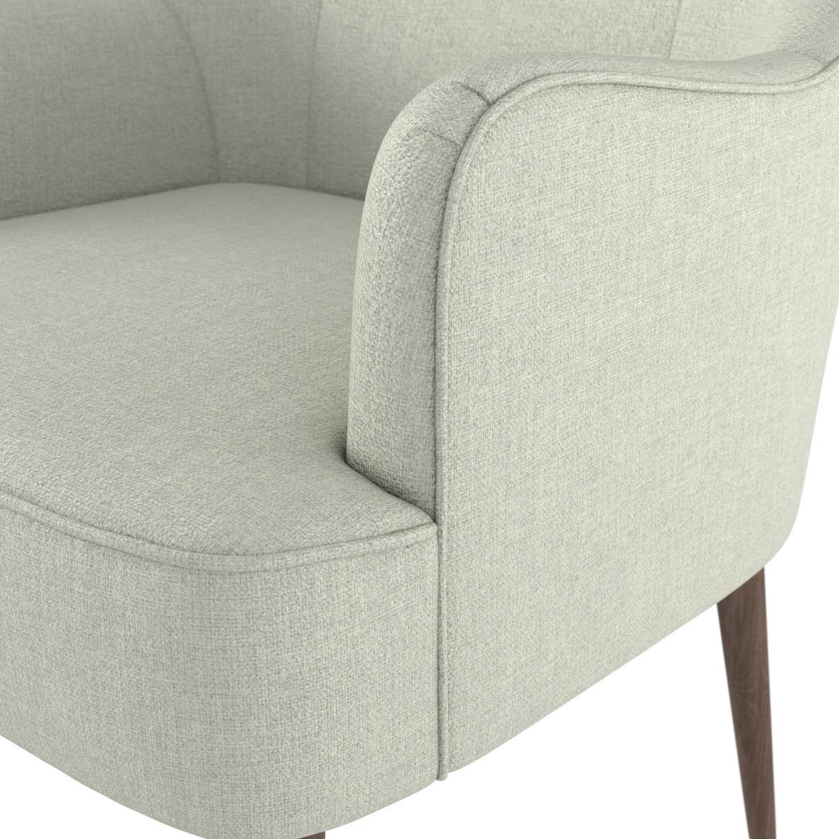 Featuring a clean, minimalist design the Bailey accent chair boasts a sleek wooden design, crafted from beech and polyester with a stunning finish that contrasts beautifully against the upholstery. This stunning chair is crafted with a soft touch boucle fabric with pinched back detail, and offers a generously padded foam and fibre seat padding and back rest for maximum comfort. Complete with angled legs and stylish sloped arms, this versatile chair will enhance any living space.