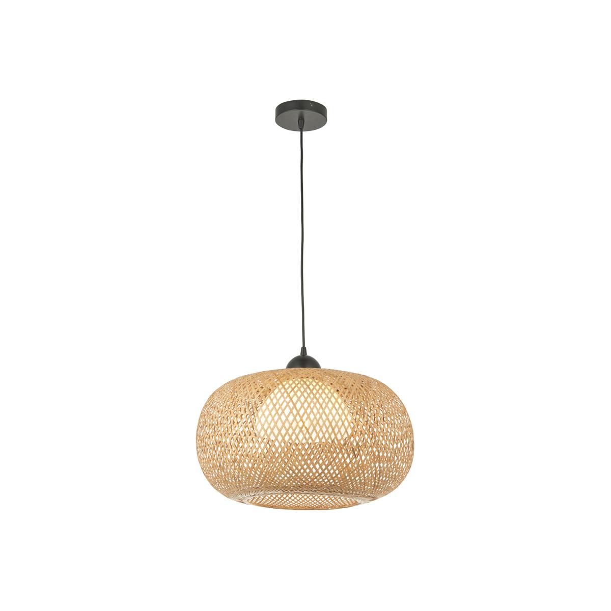 Bailey Natural Bamboo Round Pendant in Matt Black