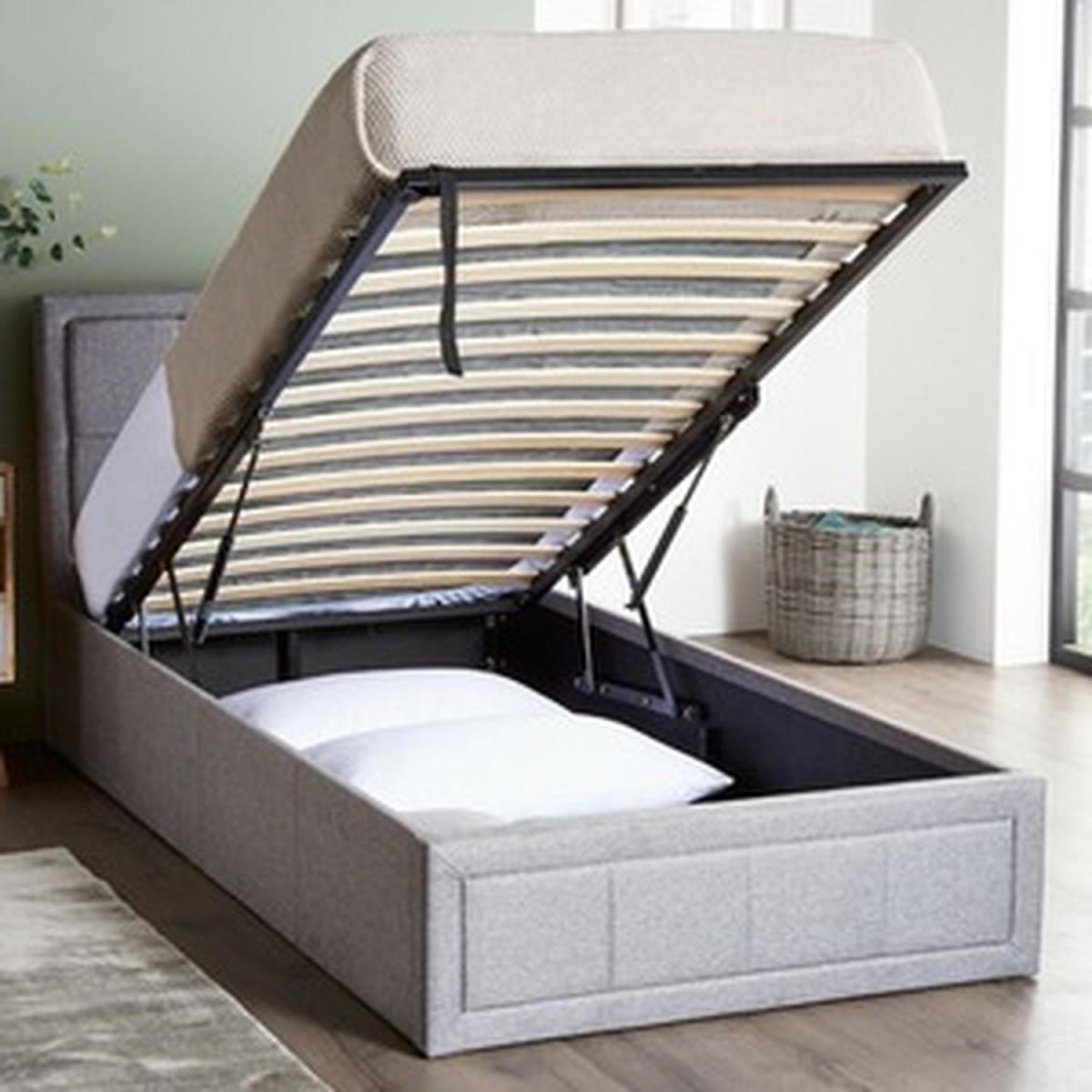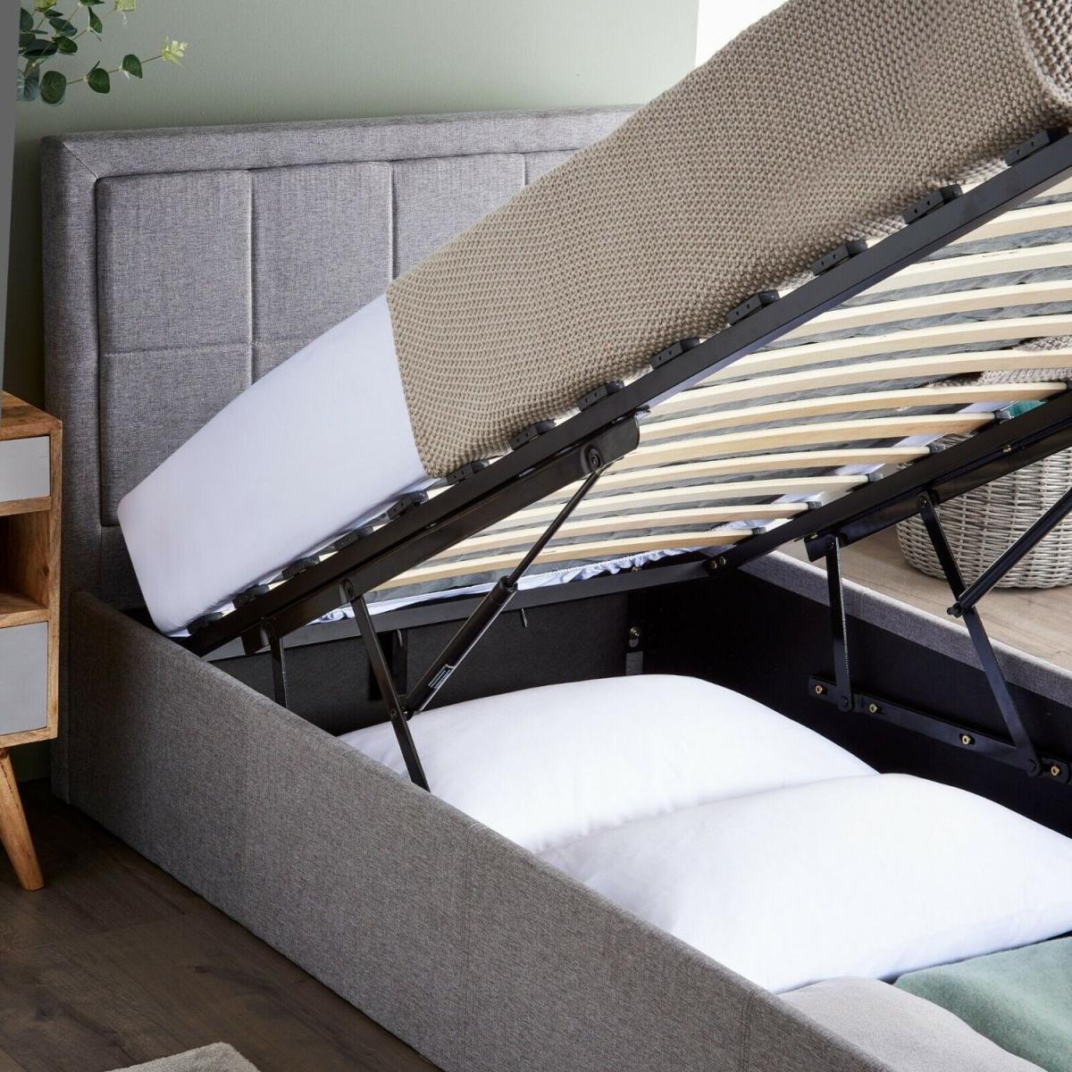 Stylish design - Upholstered in a grey hopsack linen. This ottoman storage bed frame will effortlessly blend into any bedroom interior. Extra Storage - Create extra space in your bedroom with a huge capacity under-bed storage compartment. Fabric base included to keep your items dust-free. Design with Comfort in mind - Padded headboard, base & sides with strong sprung wooden slats for support and strength. Durable - Featuring an easy-access hydraulic dual lifting mechanism, this storage bed is made from the highest quality materials including the strong centre support beam and upholstered frame. Pocket Sprung Mattress -Thick 16cm Luxury pocket sprung mattress with independent pocket springs to adapt to weight. Breathable cool touch hypoallergenic cover, anti-dust and anti-mite. High-density foam top sleeping layer medium firm rating.