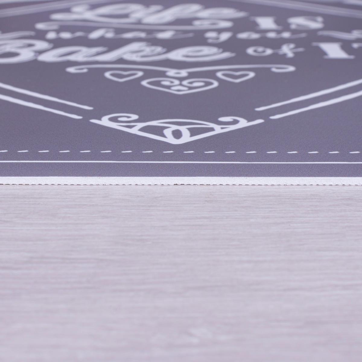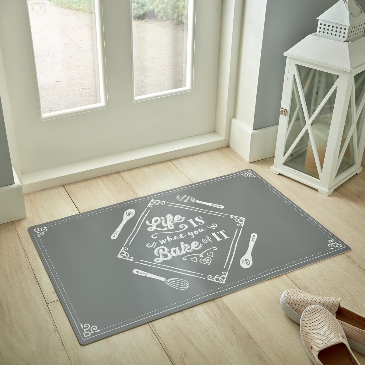 The Bake Of It Vinyl Doormat adds an extra layer under the feet of aspiring bakers. The 100% vinyl composition makes the Bake Of It Vinyl Doormat perfect for on-the-go homes. The low-profile design is hard-wearing, the ideal choice for adding some comfort to high-traffic zones. Wipe-clean and moppable, the Bake Of It Vinyl Doormat is pet, child and baker friendly. We love using in kitchens and hallways to add a cushioned element to hard floors and some motivational style to your baking spaces. Turn regularly to ensure even wear and to reduce moisture from building up under the mat. Wipe clean any spills with a damp, white cloth. Avoid the use of hard chemicals or bleach. Do not wash or tumble dry. Do not place this rug near an open fire. Please do not leave children or infants unattended.
