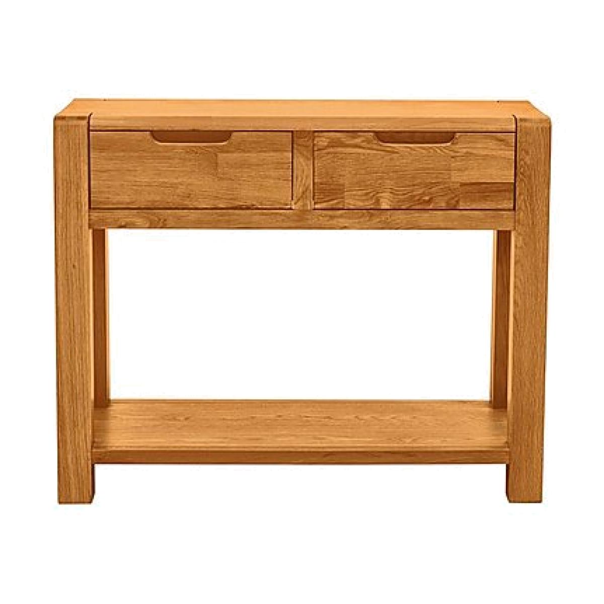 Please note: this clearance item has limited stock and is subject to availability. Useful in a hallway, stylish against a sofa back and the ideal way to divide an open plan space, this solid oak console table with butcher block- effect top is a contemporary storage piece. Why youll love it Oak console table is beautifully crafted and great value. Casual contemporary style suits all interiors. Striking butcher block- style top. Legs smoothly curve into the rounded edges of the top. Drawers have recessed handles. Plenty of storage space there are two drawers and a lower shelf. Its made of real wood so each table will be different and unique. What you need to know Wood has natural markings, knots and colour variations. Easy to clean simply wipe with anon- abrasive cloth. The Bakerloo range also includes a lamp table, a coffee table and a nest of tables. Please note: As shown below, this piece has small gaps where the legs meet the frame. This is a design feature, not a manufacturing fault. WARNING! Furniture can tip over unexpectedly and cause injury. This item must be fixed to a wall using the anti- tip kit provided. Be sure to use the correct wall fixings suitable for the walls in your home. Furniture Village is not able to fix anti- tip devices for you. Seek professional advice if you are unsure.